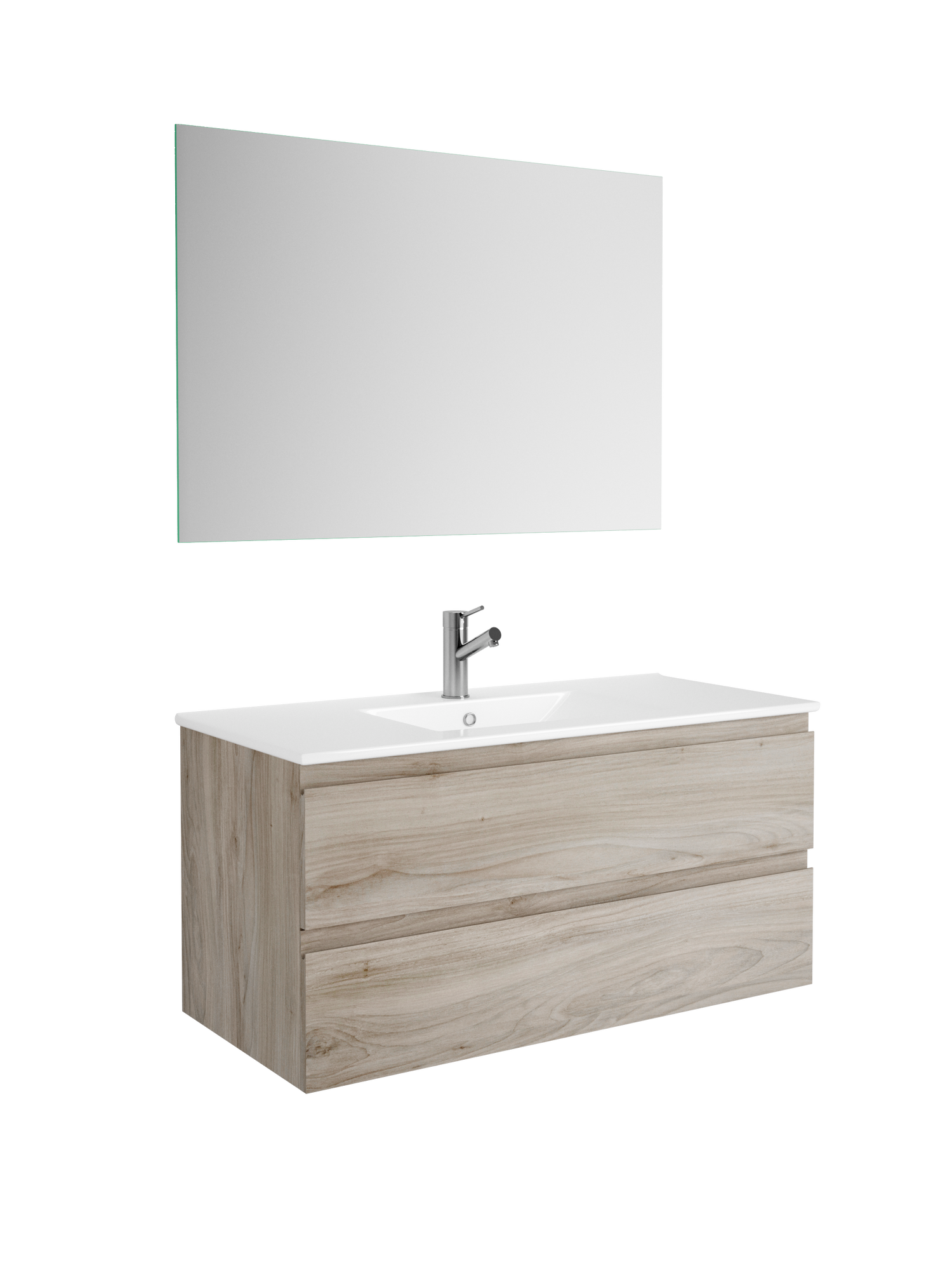 - Features elegant touch with Onix ceramic basin and textured drawer interiors