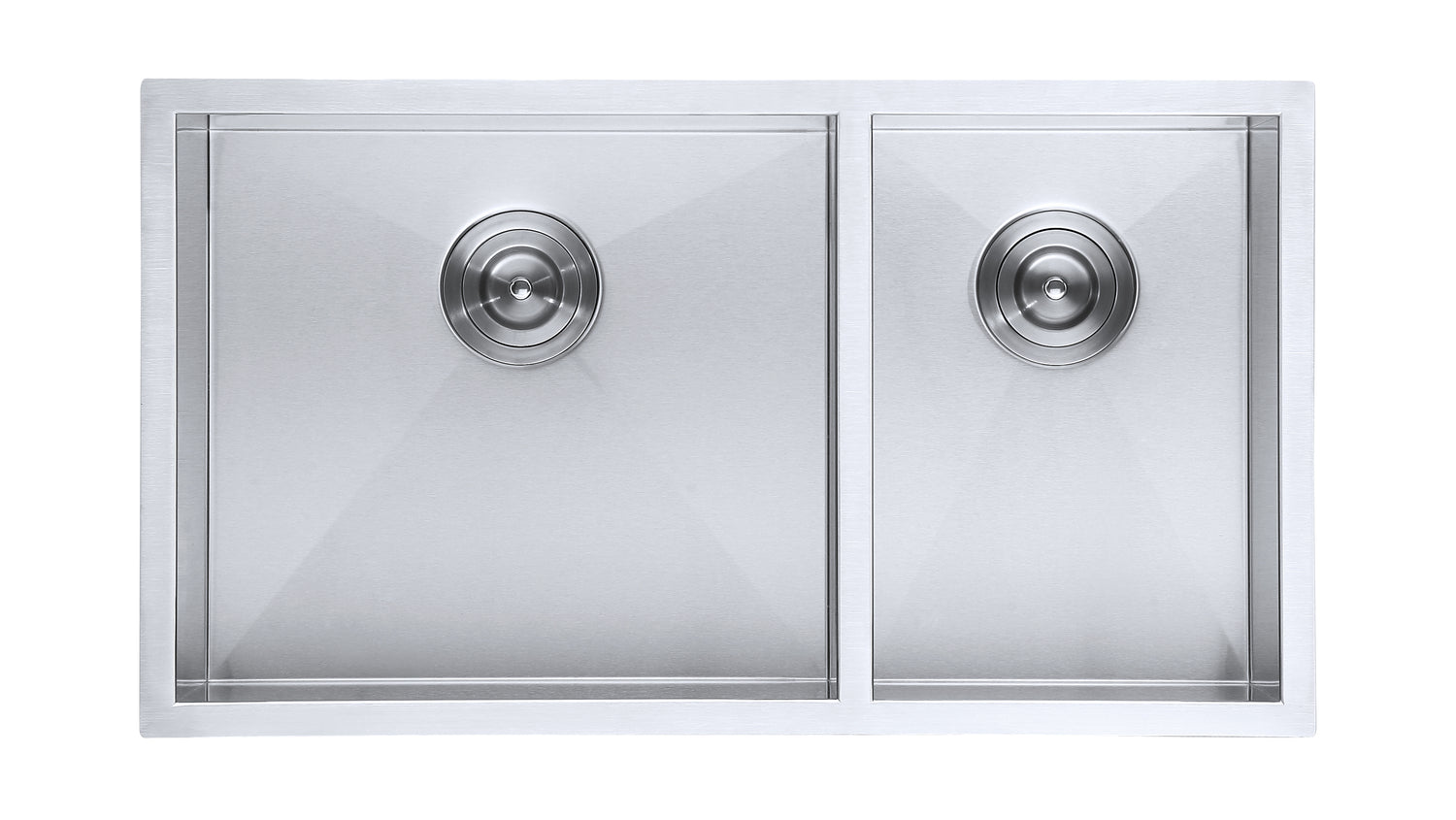 DAX Stainless Steel Handmade 60/40 Double Bowl Undermount Kitchen Sink, 32", Brushed Stainless Steel DAX-SQ-3218-X