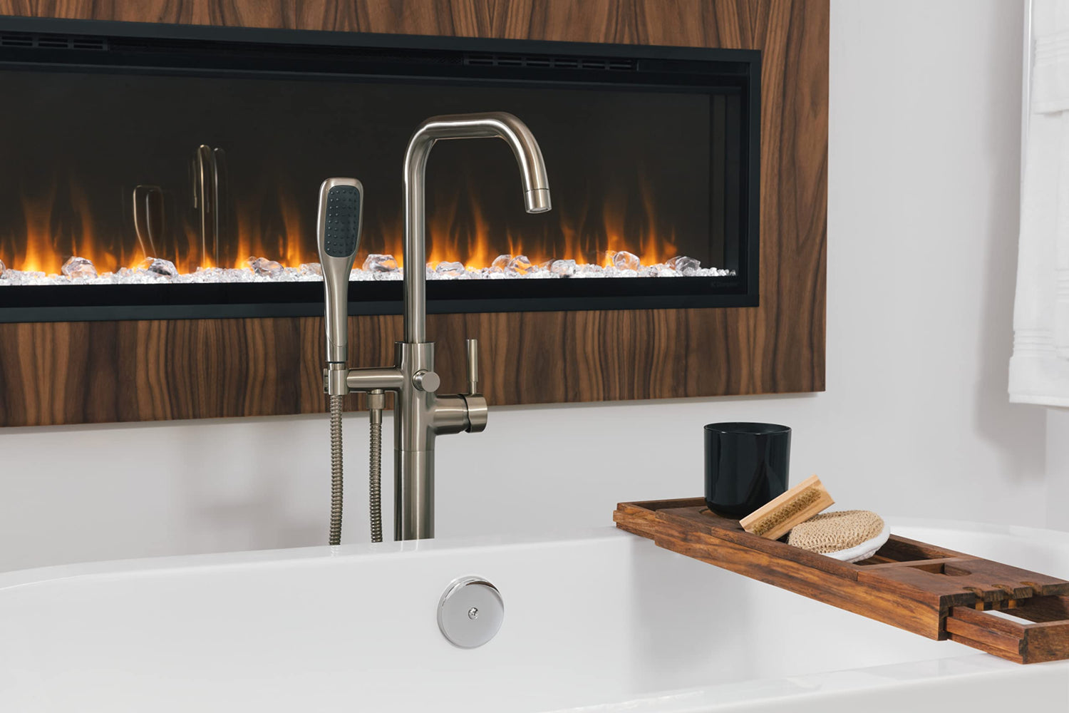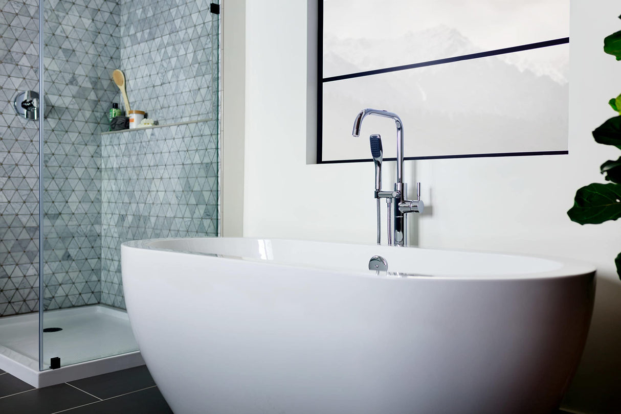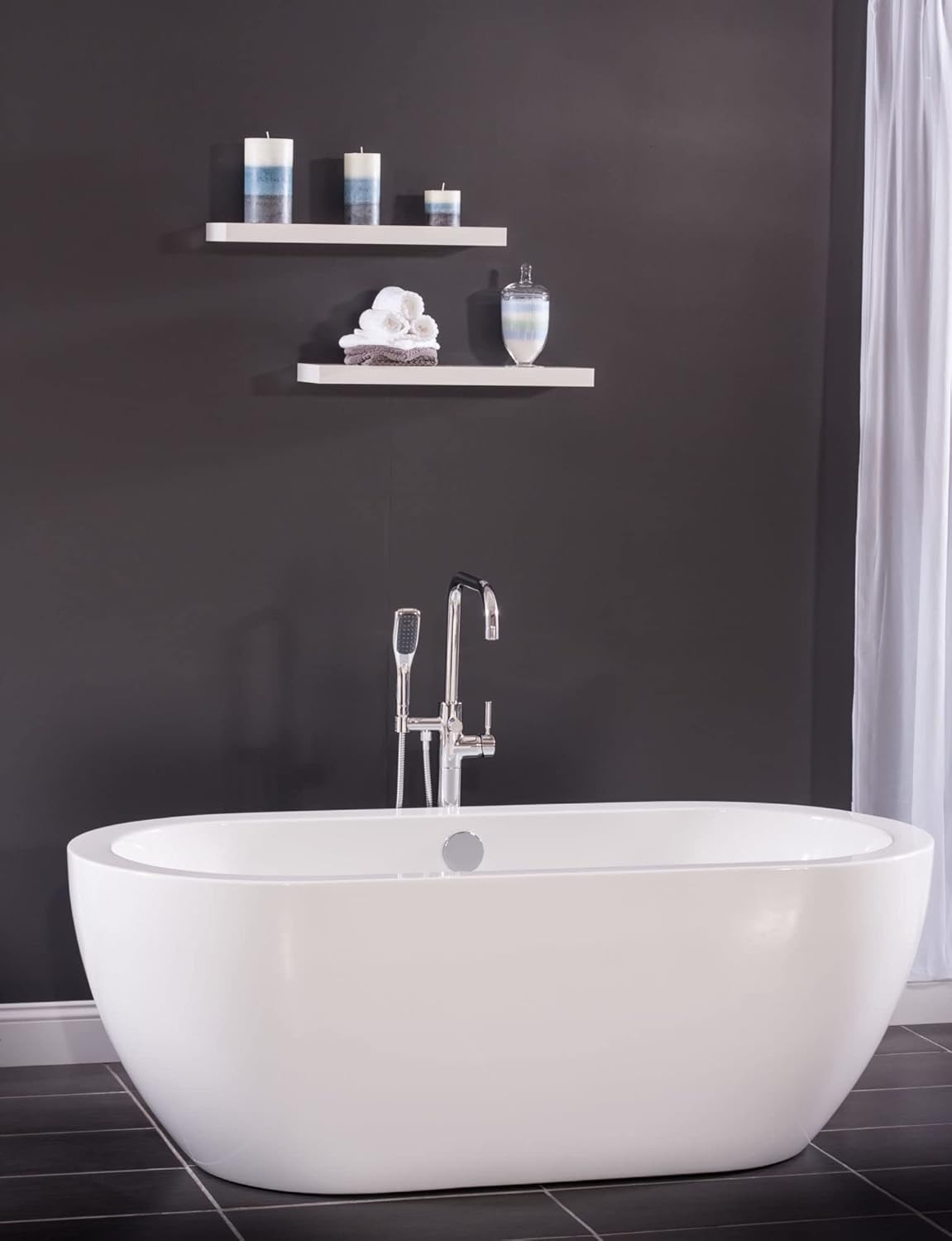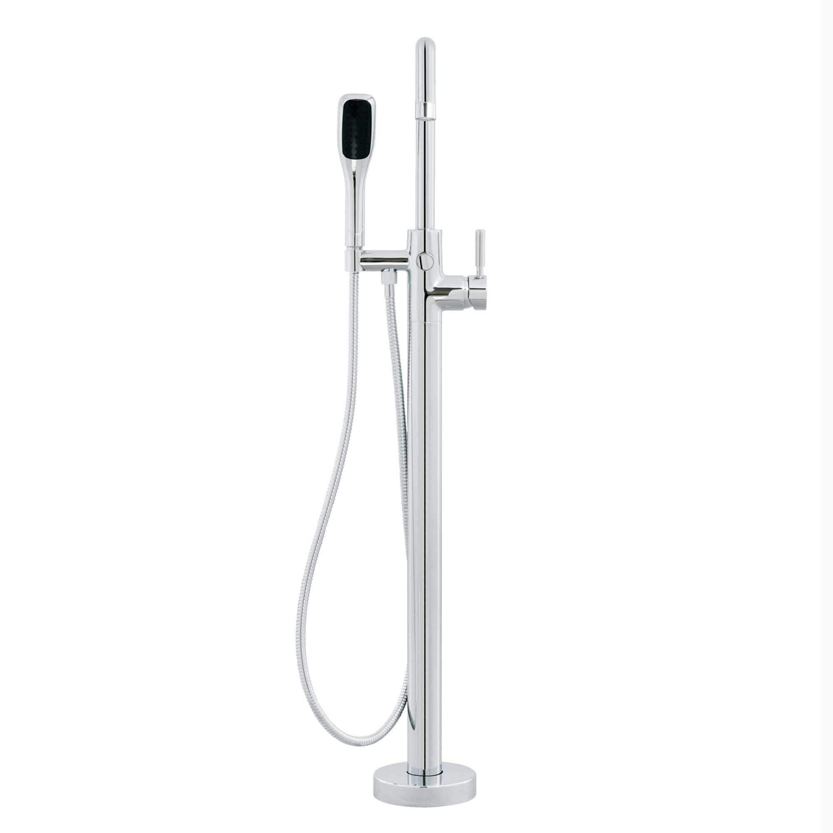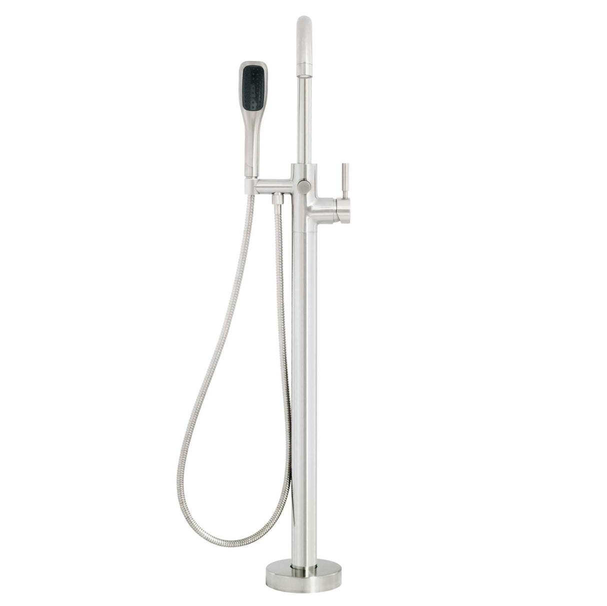 This floor-mounted, freestanding tub filler features solid brass construction for long-lasting durability. It offers smooth single-handle operation and includes a hand shower to enhance the bathing experience. The built-in diverter allows you to easily switch the water flow between the faucet spout and the hand shower. ADA compliant and covered under Miseno’s limited lifetime warranty, this faucet also includes a stylish mounting plate and all necessary hardware for installation. Please note, if installing on a concrete slab, a cavity must be created in the floor at the installation point, along with an on-site fabricated mounting bridge over the cavity to properly mount the faucet base and provide access to supply connections and inlet hoses.