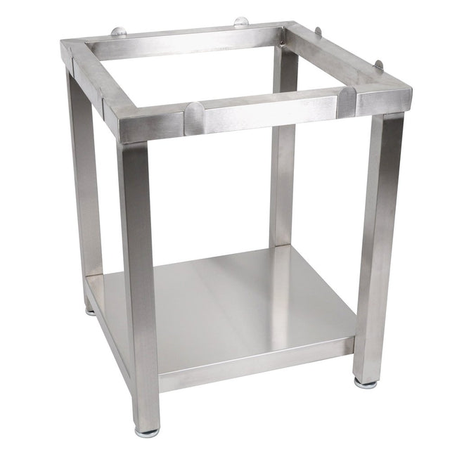 Bring home the finest in butcher blocks with this Cucina Laforza butcher block base from John Boos. This sturdy stainless steel frame features an adjustable lower shelf and adjustable feet for leveling. Not only does this base work great for extra counter space, but when paired with the Cucina Laforza butcher block top (CUCLA24T) it works as a complete kitchen workspace for cutting and preparing delicious meals. Cherished and used by renowned chefs, this handsome butcher block base is sure to suit your needs.