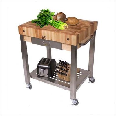 John Boos CUCT24-D Cucina Americana Technica Kitchen Cart with Butcher Block Top Counter Height: 4", Drawers: 1 Included