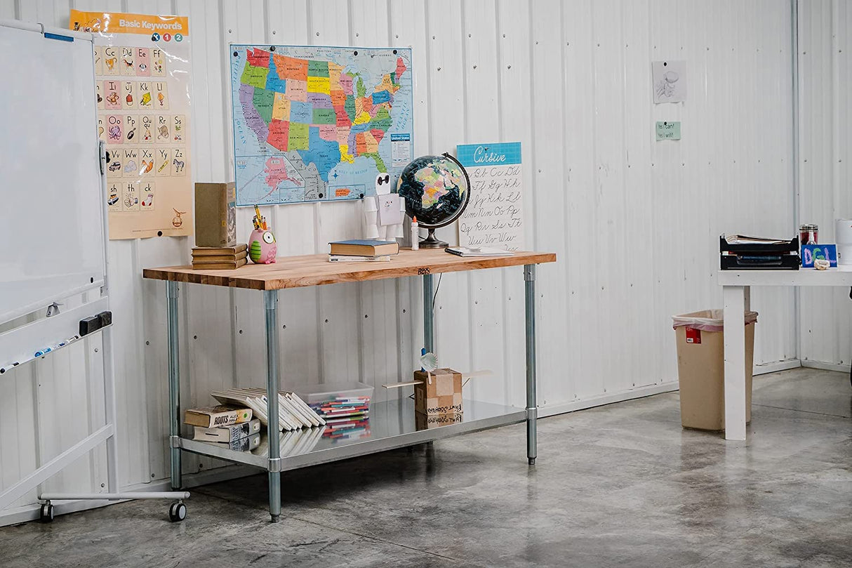 John Boos GSK8-3048 High-Quality Maple Wood Top Work Table with Adjustable Lower Shelf, 48 x 30 1.5 Inch, Galvanized Steel