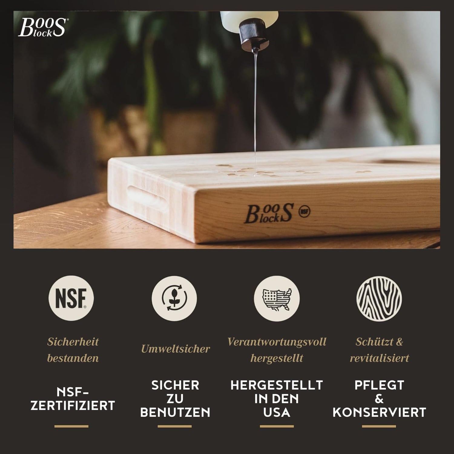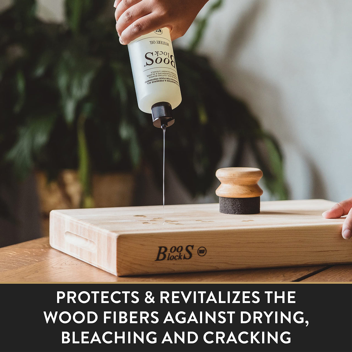 Keep your wooden cutting boards and butcher blocks in prime condition with John Boos Block Mystery Oil. Once a month, apply an even coat of NSF Approved John Boos Mystery Oil to your cutting board or butcher block and allow it to soak in overnight. Allow the Mystery oil to fully penetrate through the wood fibers overnight, then wipe off any excess oil. Apply additional oil to any visible dry spots or for any other necessary reasons. Do not over oil your cutting board. Repeat this process more often when the board is brand new and thirsty, or if you live in a dry, arid climate. John Boos recommends applying John Boos Board Cream (sold separately) to seal the top of the wood surface after applying the Mystery Oil. A few quick minutes of regular oil application will ensure your new board is properly seasoned, and ready for work! Applied every three to four weeks, John Boos Mystery Oil prevents wood from drying, splitting, or cracking. Mystery Oil is safe for food preparation surfaces and can also be used to maintain wood countertops and wooden kitchen tools. Proudly Made in the USA of all Natural ingredients. NSF certified.