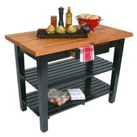 Beautiful kitchen island table with 1-1/2”-thick blended oak butcher block top. 7 sizes to choose from. 12 paint & stain options for base of table. OAK C TBL 48X25X1-1/2 W/FJ CRM BLAC