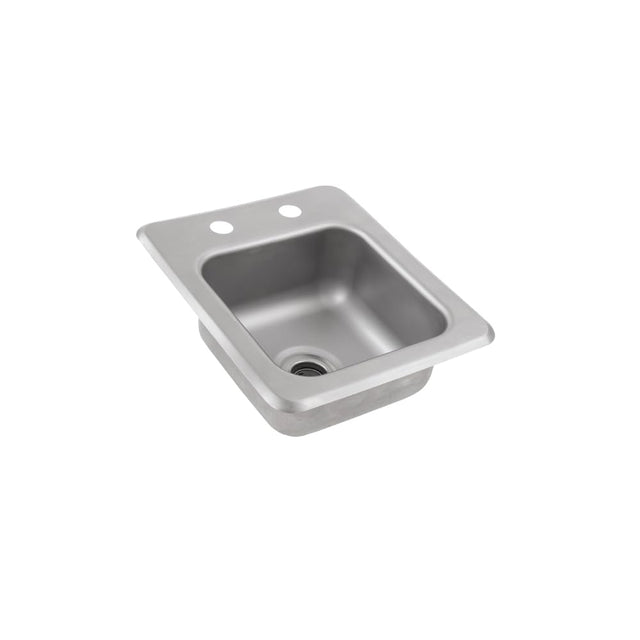 John Boos' Pro-Bowl Drop-In Sink, 1-compartment, 12"W x 14"D x 9"H overall size, (1) 9"W x 9" front-to-back x 5" deep bowl, deck mount faucet holes with 4" centers, 2" drain opening with basket drain, with left & right side splashes, stainless steel construction (faucet not included), NSF. DROP-IN H-SINK 9X9X5D DM 4"OC 18GA