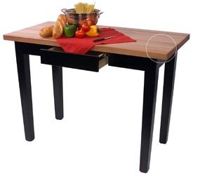 Very low stock (1 unit)John Boos OC6025C-D-2S-BK OAK C TBL 60X25X1-1/2 W/FJ CRM BLAC CASTERS-1 DWR-2...