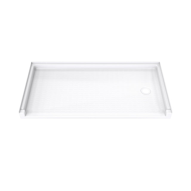 DreamLine DreamStone 30 in. D x 60 in. W x 4 3/16 in. H Right Drain Single Threshold Shower Base in White