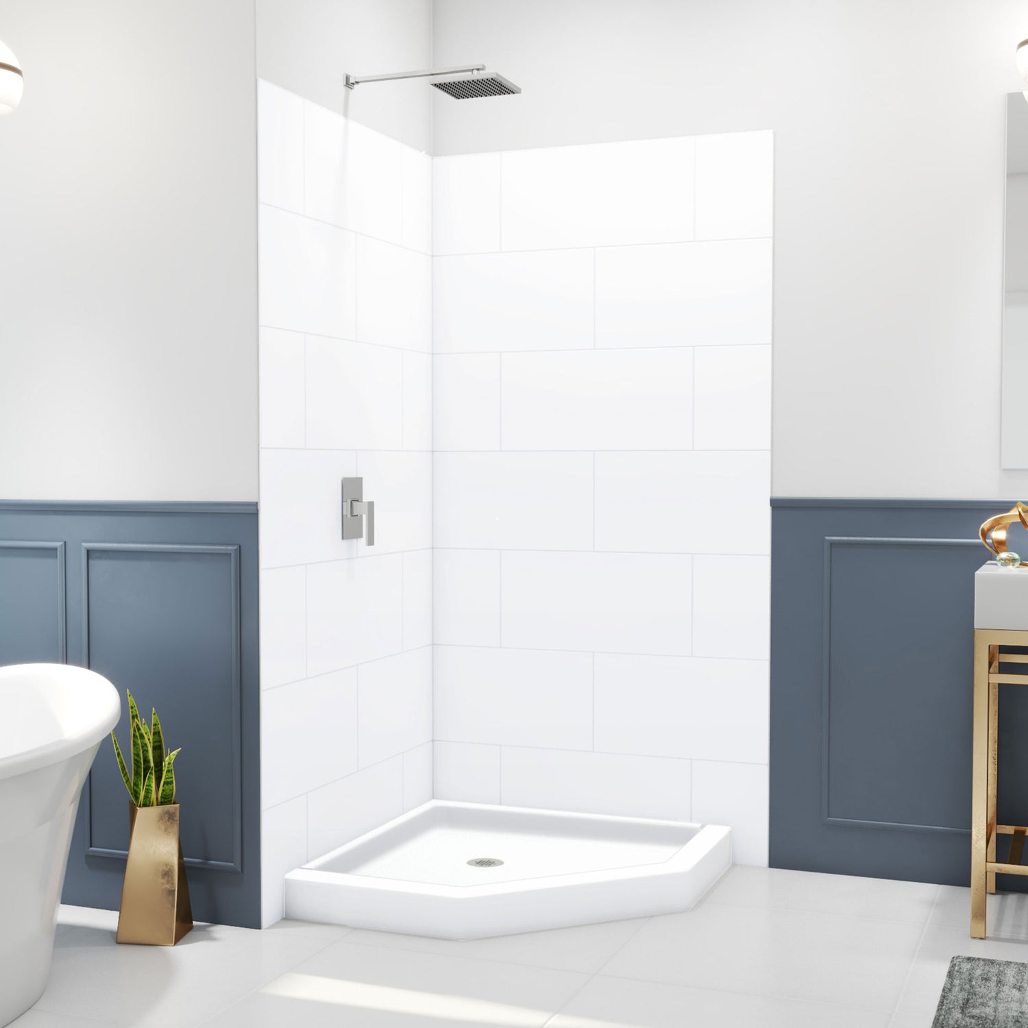 DreamLine DreamStone 38 in. D x 38 in. W Base and Wall Kit in White Traditional Subway Pattern