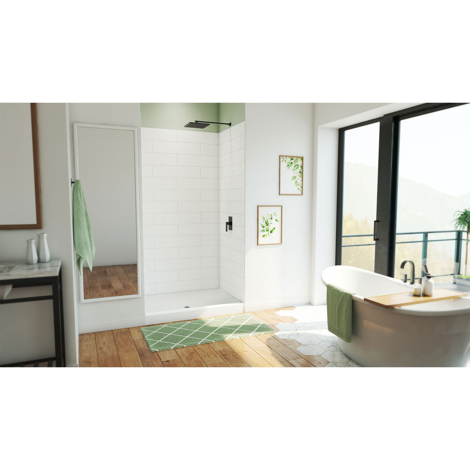 DreamLine DreamStone 34 in. D x 48 in. W Base and Wall Kit in White Modern Subway Pattern
