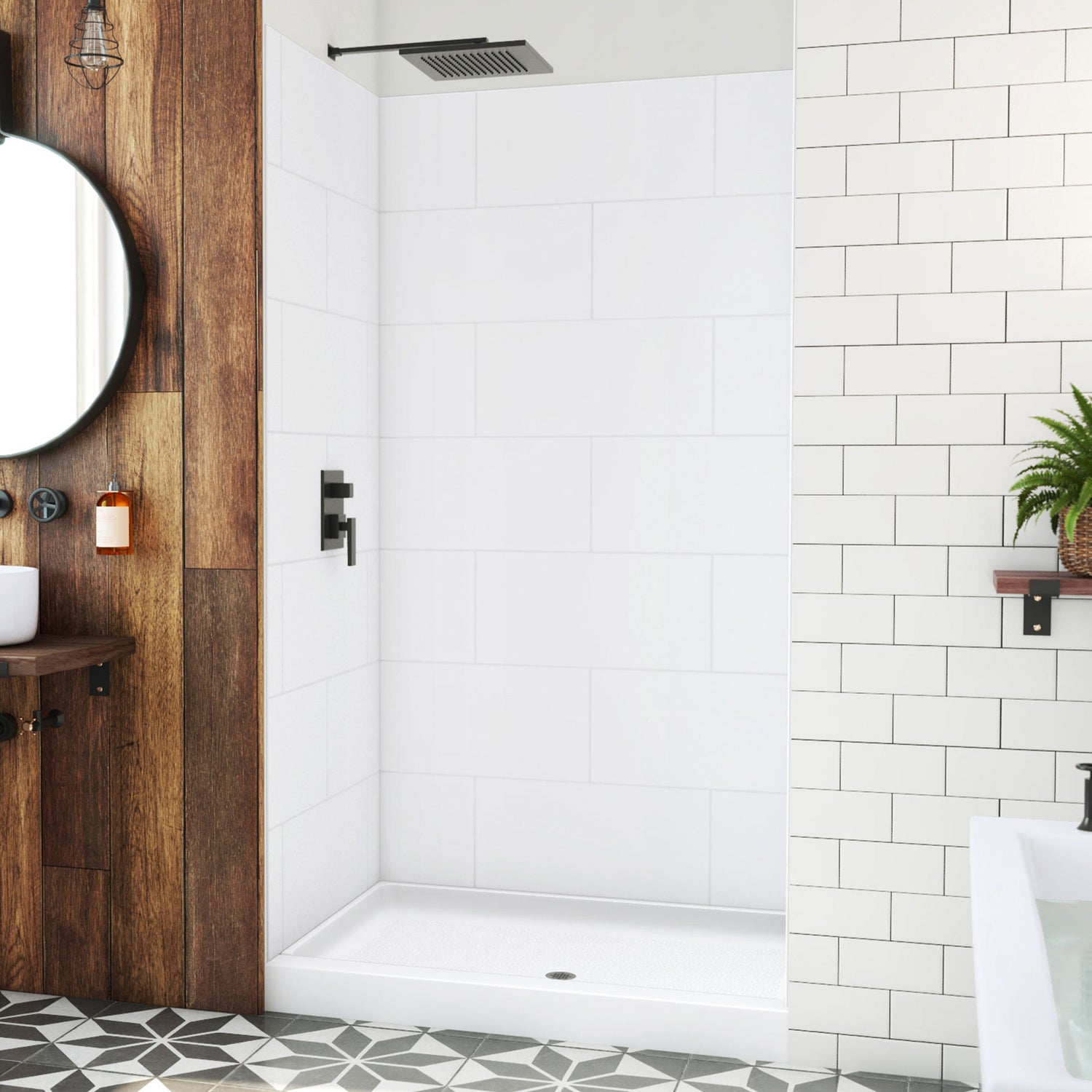 DreamLine DreamStone 34 in. D x 48 in. W Base and Wall Kit in White Traditional Subway Pattern
