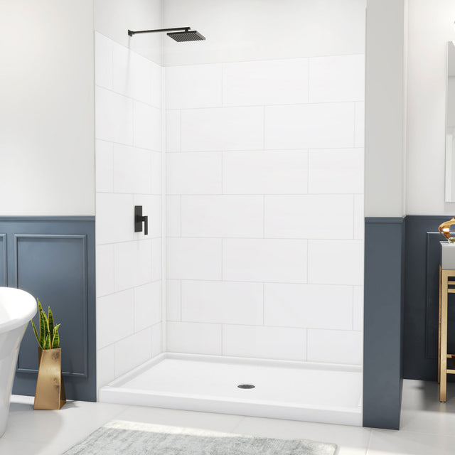 DreamLine DreamStone 42 in. D x 60 in. W Base and Wall Kit in White Traditional Subway Pattern