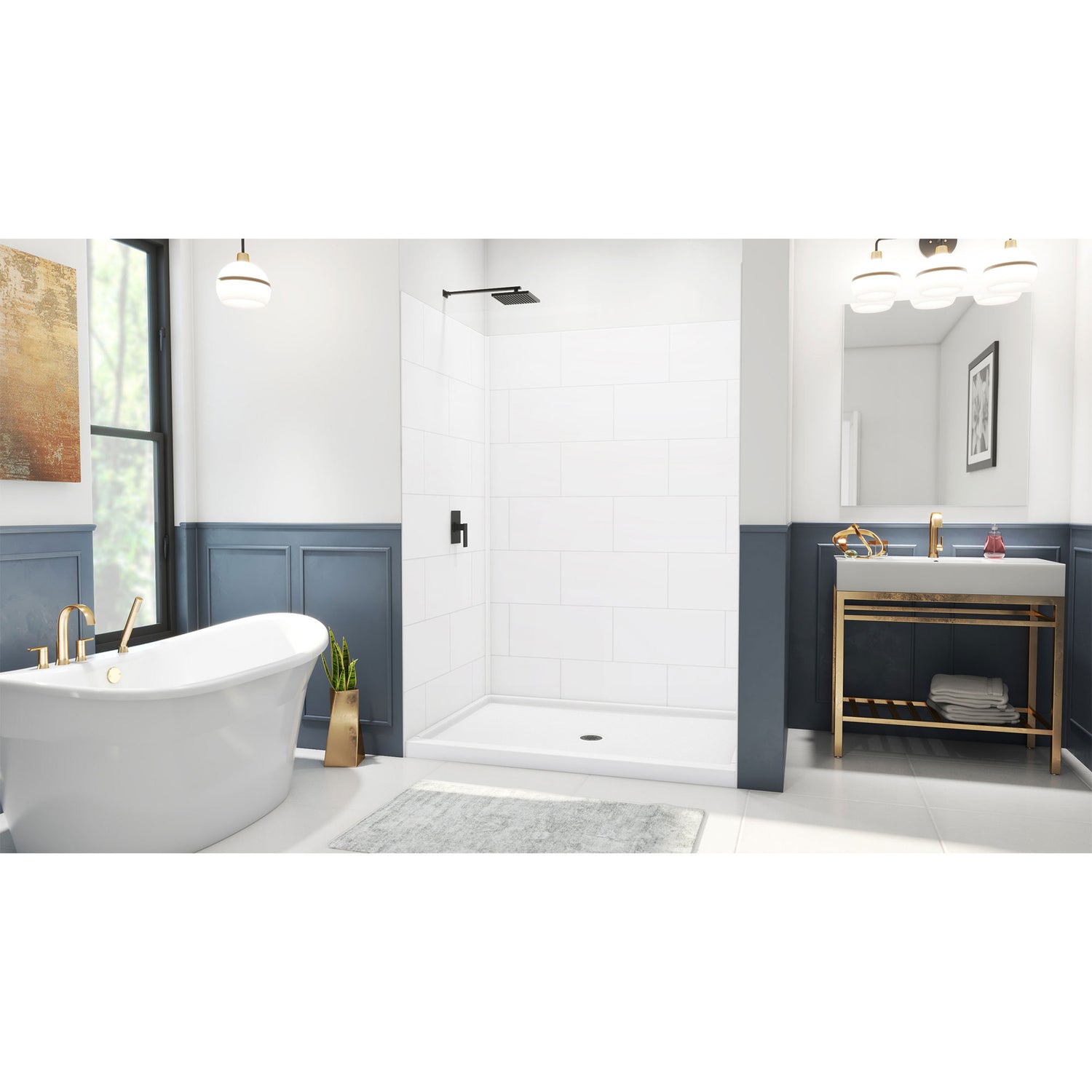 The DreamStone collection offers popular horizontal subway pattern walls with an authentic solid surface shower base. The durable, non-porous surface material makes DreamStone walls and bases resistant against mold, chips, and cracks. The solid color runs completely throughout the material for long-lasting durability and easy maintenance. The pebbled texture of the base provides a slip-resistant surface for added safety. Enhance your bathroom space with DreamStone for a pristine and timeless aesthetic.
