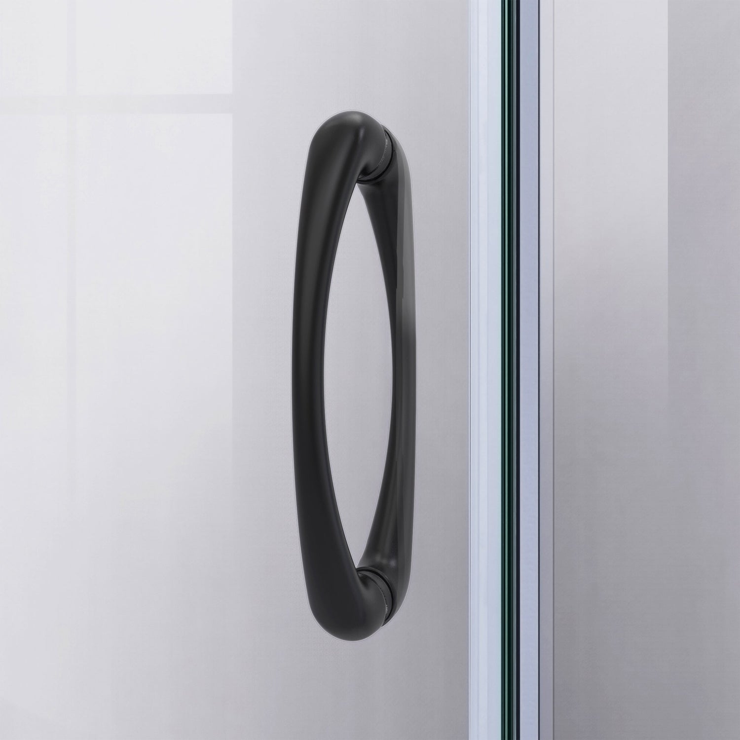 DreamLine Prime 36 in. x 74 3/4 in. Semi-Frameless Frosted Glass Sliding Shower Enclosure in Satin Black with Biscuit Base Kit
