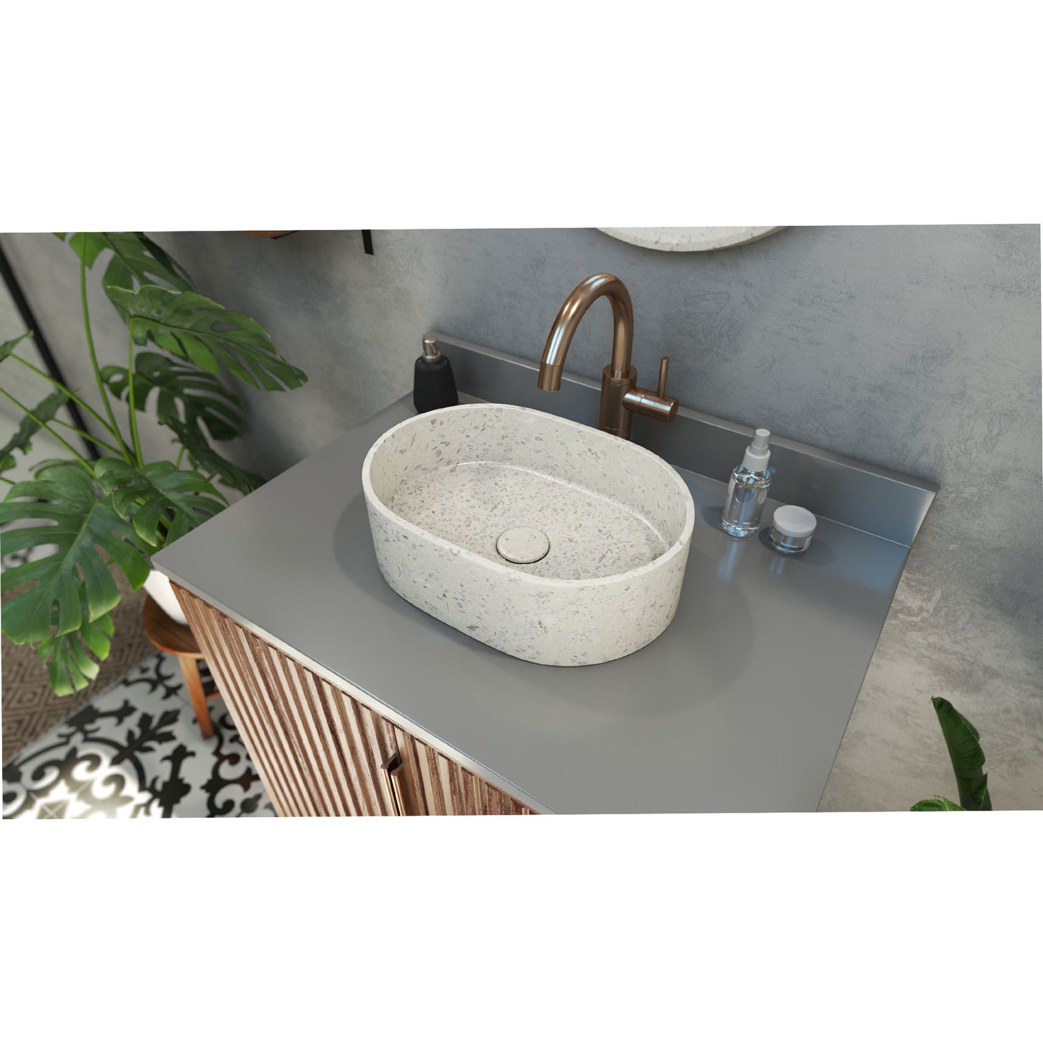 Ambia Oblong Terrazzo Vessel Sink in White