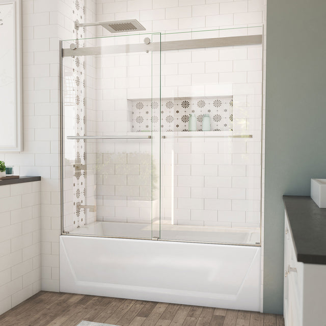 DreamLine Essence 56-60 in. W x 60 in. H Frameless Bypass Tub Door in Brushed Nickel