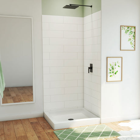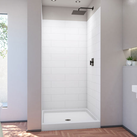 Sale price $2,80999 Regular price $4,71900UnavailableIn stock online (33 Units)DreamLine DreamStone 34 in. D x 42 in. W Base and Wall Kit in White Modern Su...