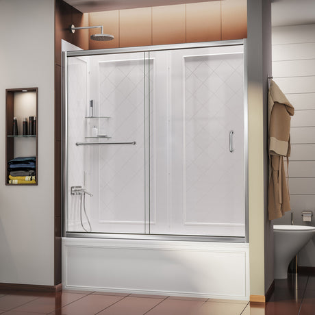 Sale price $71999 Regular price $1,02045UnavailableIn stock online (9 Units)DreamLine Infinity-Z 56-60 in. W x 60 in. H Clear Sliding Tub Door in Chrome ...