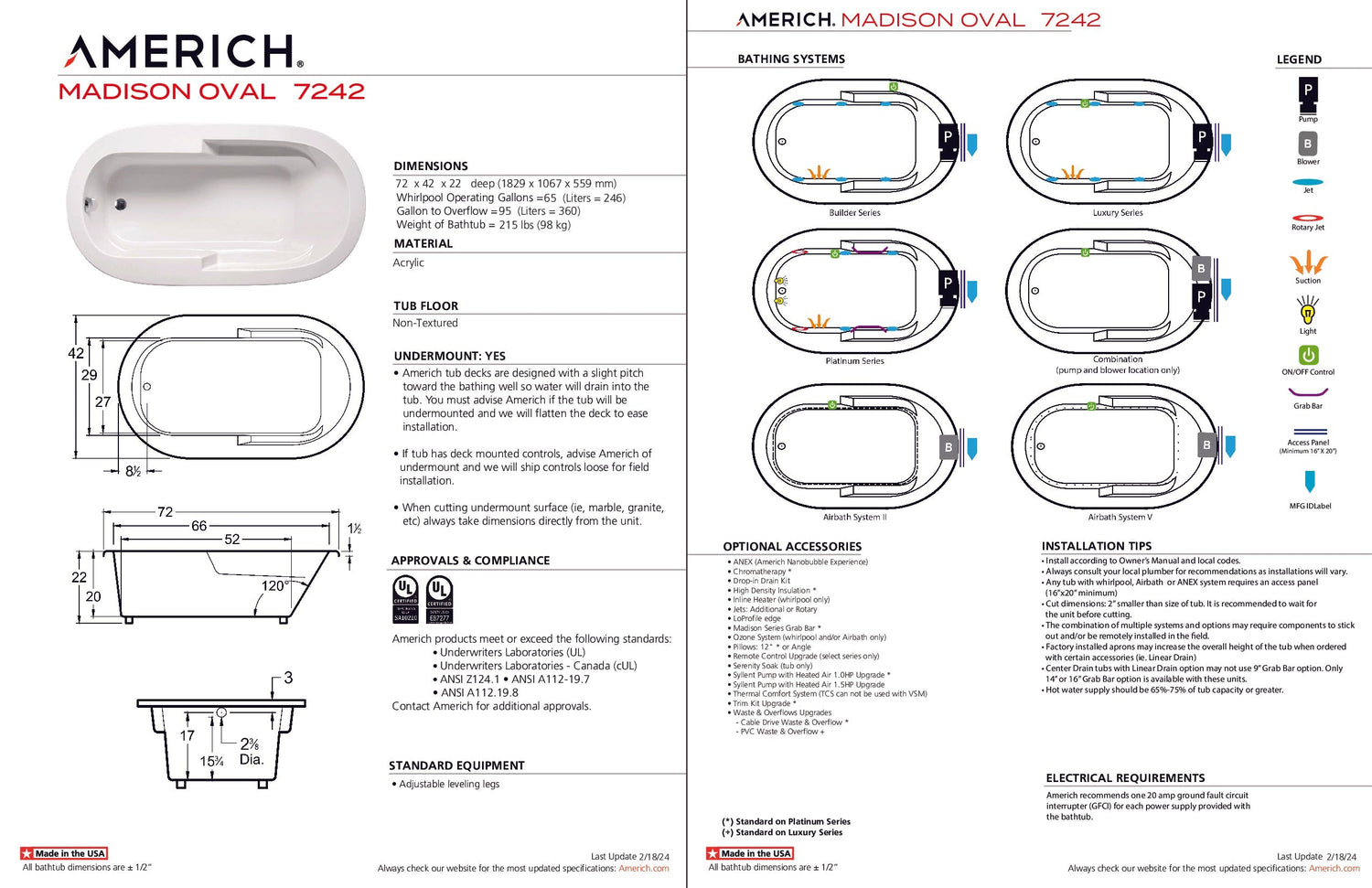 Americh OM7242TA5-BI Madison Oval 7242 - Tub Only / Airbath 5 - Biscuit