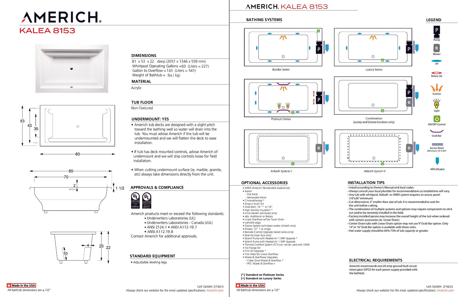 Americh KA8153TA2-BI Kalea 8153 - Tub Only / Airbath 2 - Biscuit