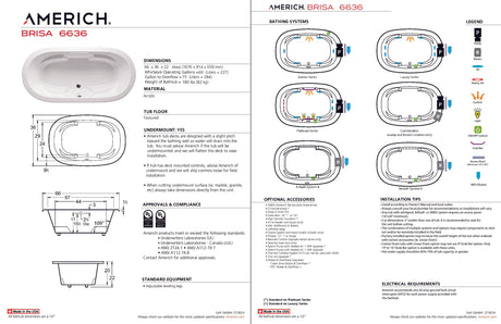 Regular price $3,67500UnavailableAmerich BR6644-24TA5-WH Brisa II 6644 - Tub Only / Airbath 5 - White