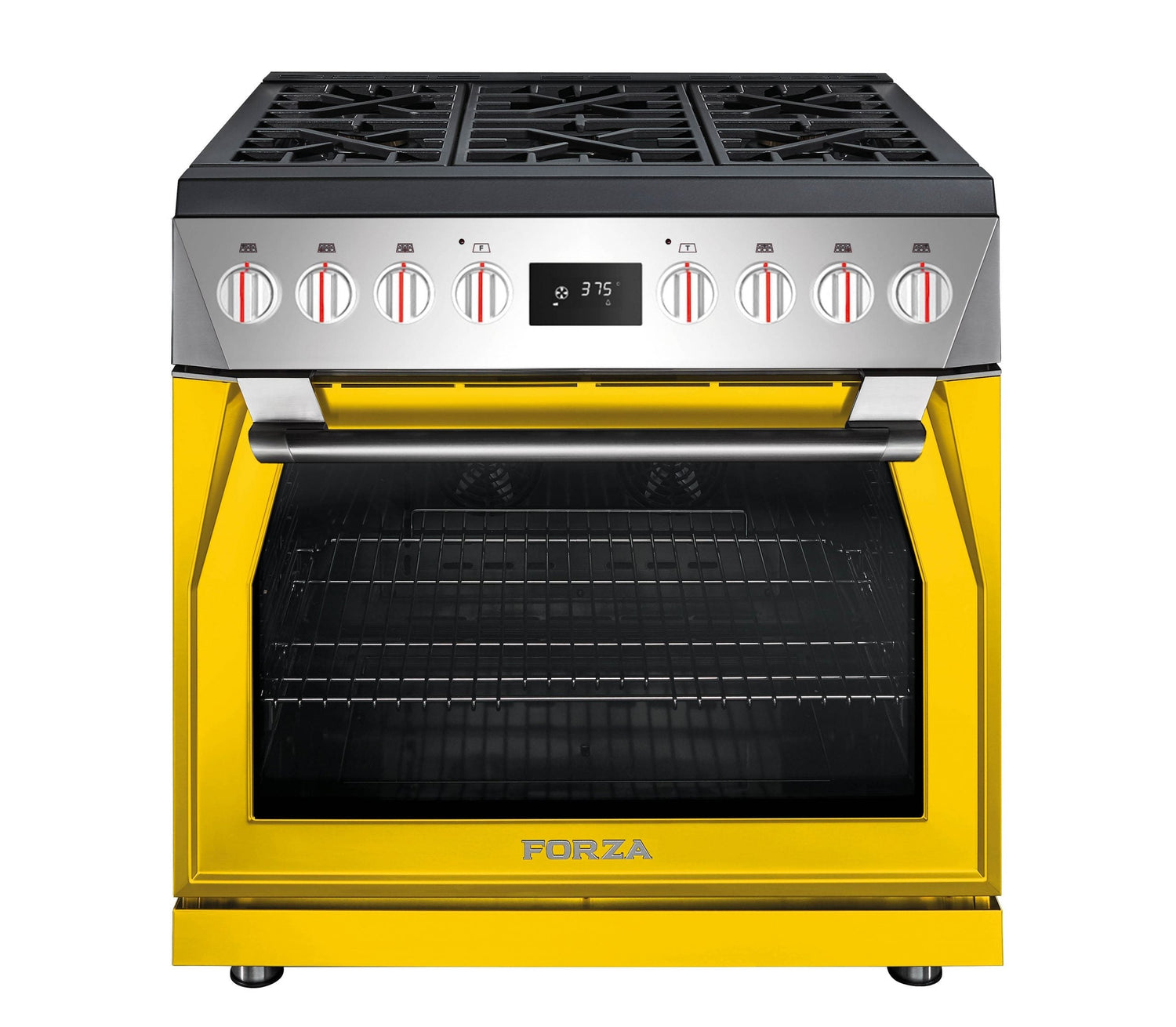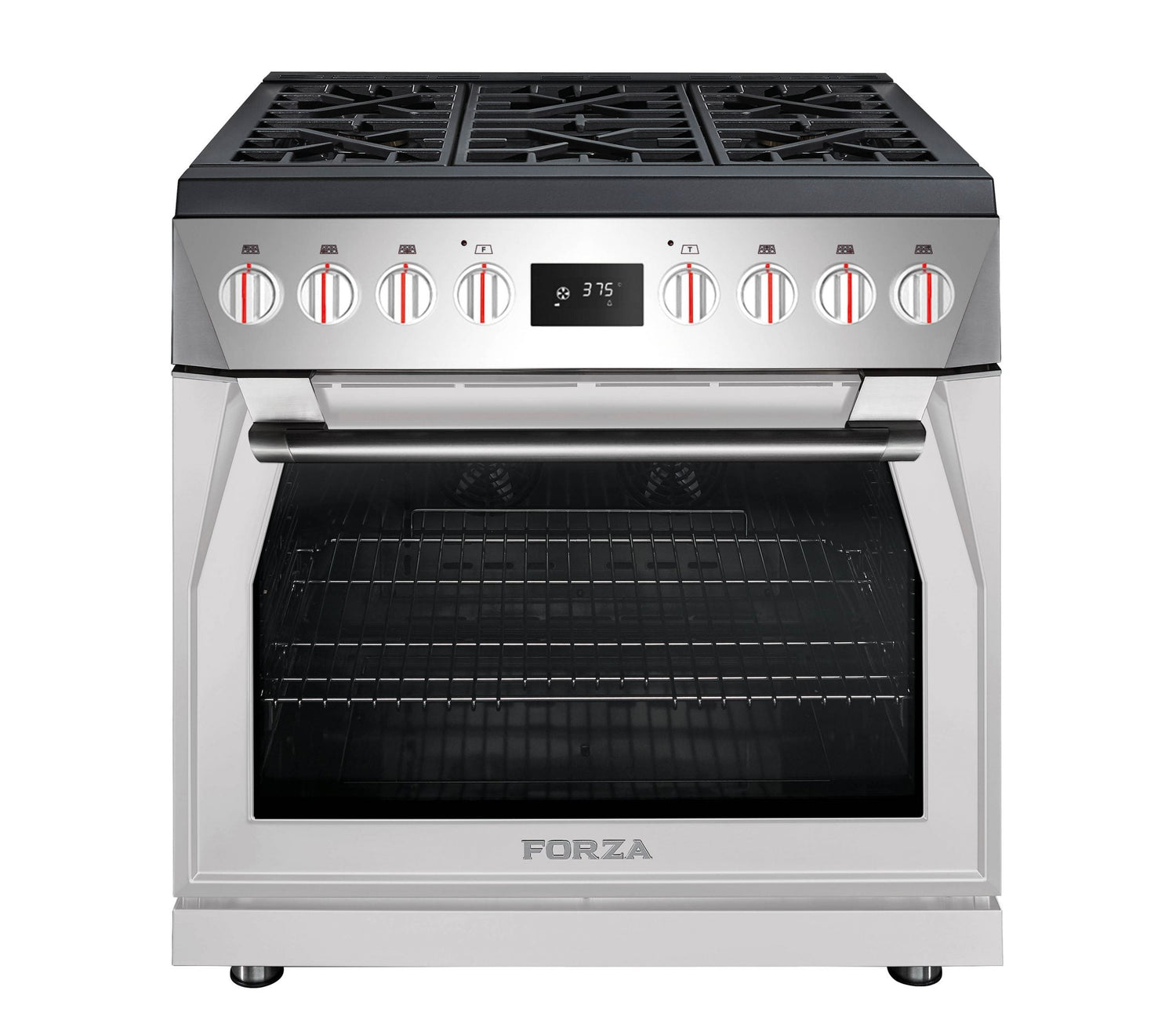 With the soul of radical Italian design and the heart of an American muscle car, Forza’s 36-inch Professional Dual Fuel Range combines the high performance of Forza’s gas cooktops with an electric True Euro Convection oven. The range comes fully loaded featuring 6 high-powered burners including 3 dual-flame burners that range from 685 BTU to 20,000 BTU and three 12,000 BTU burners. Equipped with Forza’s MassimoRED™ broiler, Infinito™ Grate System and self-cleaning function, this range elevates the cooking experience in any kitchen.