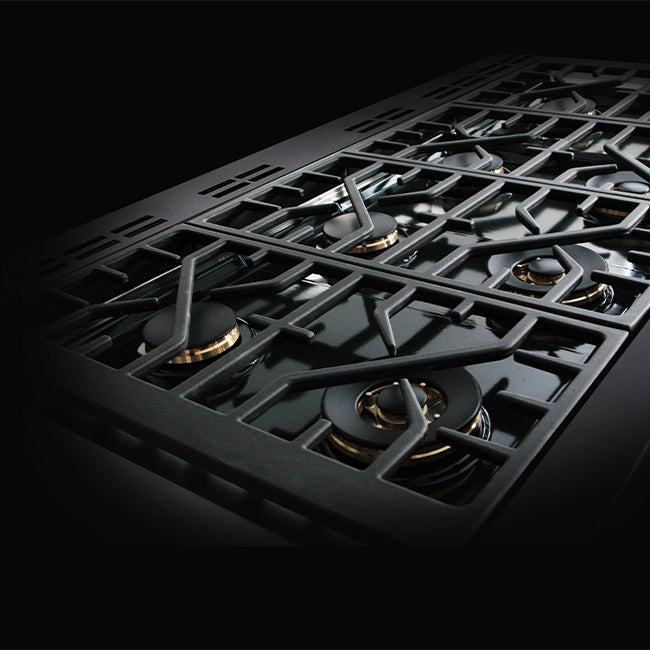 | Cast iron pan supports | Continuous Infinito™ Grate System with integrated bull nose |
