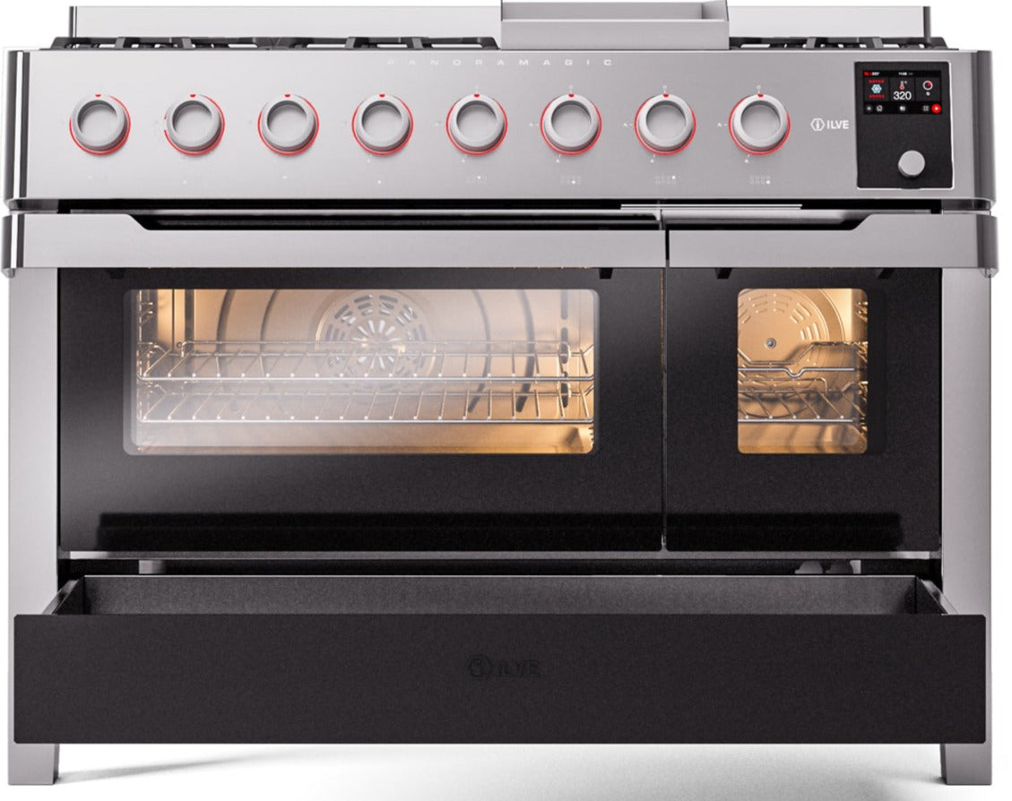 Add the ultimate touch of indulgence to your kitchen with this futuristic style. Combining a beautiful stainless steel-body, black glass and awe-inspiring red LED backlit control knobs makes this range a remarkable find. Easily control the oven functions with the outstanding 4,3” TFT touch screen display. Advanced technologies and cutting-edge design, this revolutionary style is unlike any other on the market.