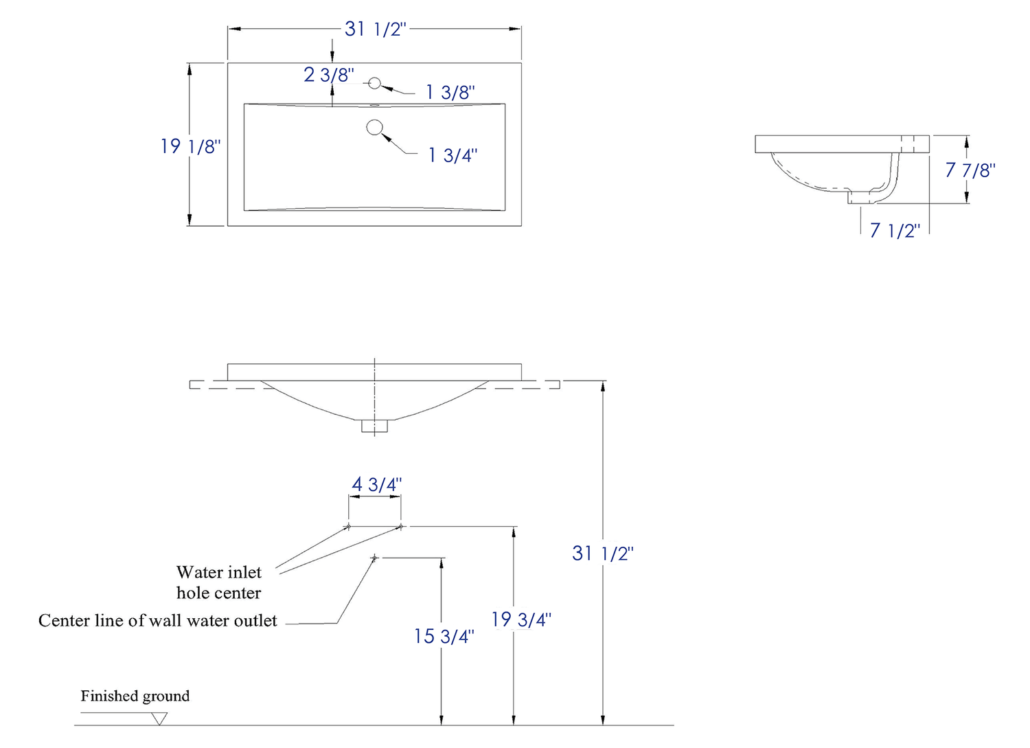 EAGO BH001 White Ceramic 32"x19" Rectangular Drop In Sink