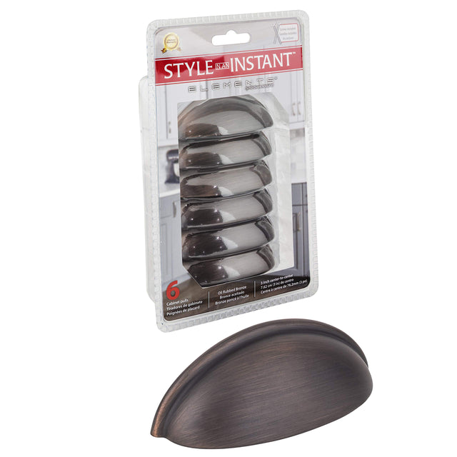 Elements 2981DBAC-R 3" Center-to-Center Brushed Oil Rubbed Bronze Florence Retail Packaged Cabinet Cup Pull