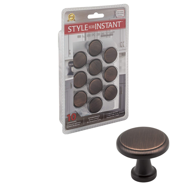 Elements 3970-DBAC-R 1-3/16" Diameter Brushed Oil Rubbed Bronze Round Kenner Retail Packaged Cabinet Knob