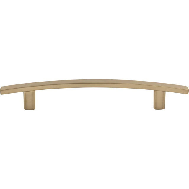 A slightly curved strap sitting atop the round edged feet of Thatcher by Elements creates a casual, easygoing vibe. A matching "T" knob combined with four lengths and seven top trending finishes make this collection the perfect match for any style of cabinets. Each item is individually wrapped to protect the item from damage. Attachment hardware is included. Features: Elegant curved strap style bar Covered by a limited lifetime Includes (1) pull, (2) 1" #8/32 screws, and (2) 1" breakaway screws Individually wrapped to protect finish and prevent damage Perfect for kitchens, baths, closets, furniture, and more Specifications: Center to Center: 5-1/16" Length: 7-1/4" Width: 7/16" Projection: 1-1/8"