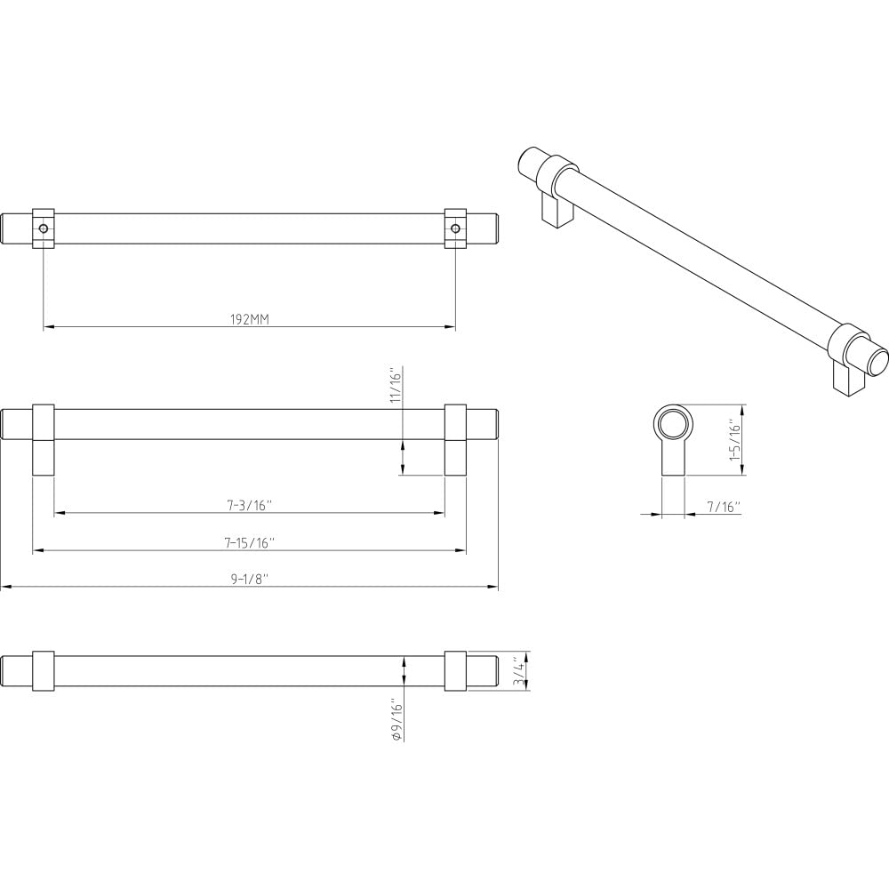 192 mm Center-to-Center Matte Black with Brushed Gold Key Grande Cabinet Bar Pull