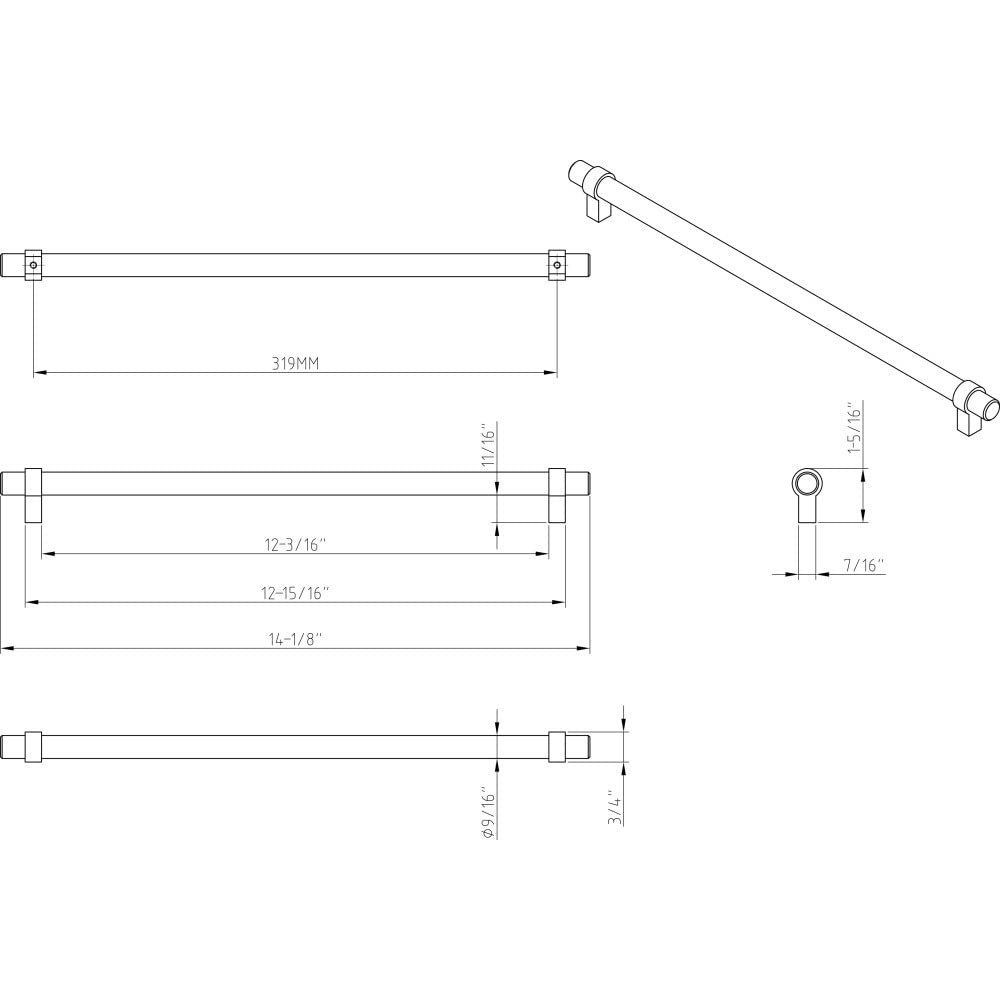 319 mm Center-to-Center Matte Black with Satin Nickel Key Grande Cabinet Bar Pull