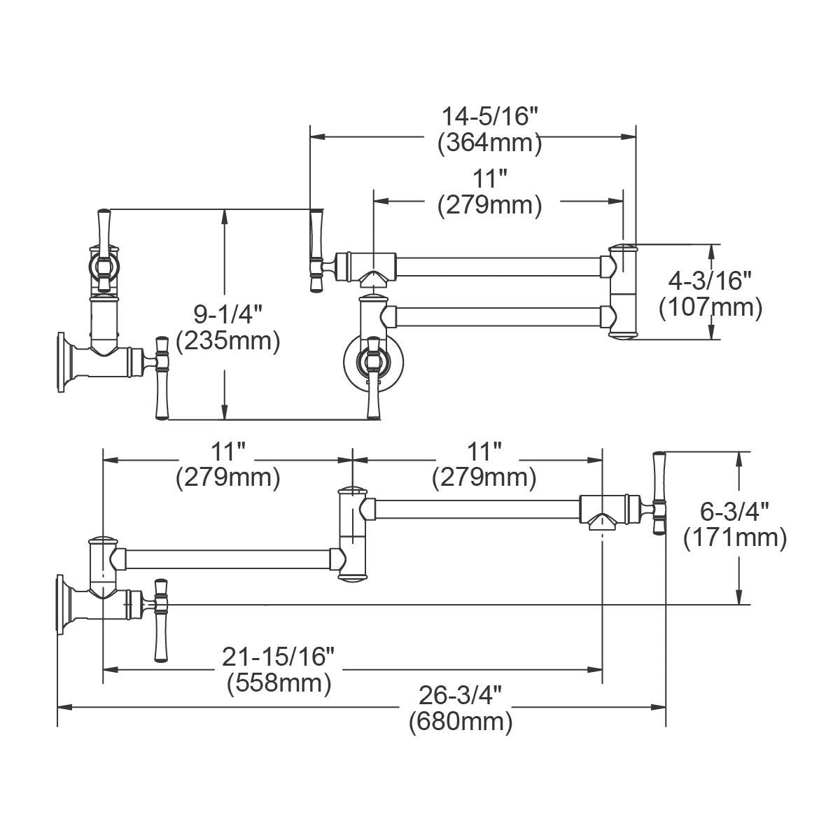 Elkay Explore LKEC2091LS Single Hole Wall Mount Pot Filler Kitchen Faucet with Lever Handles, Lustrous Steel