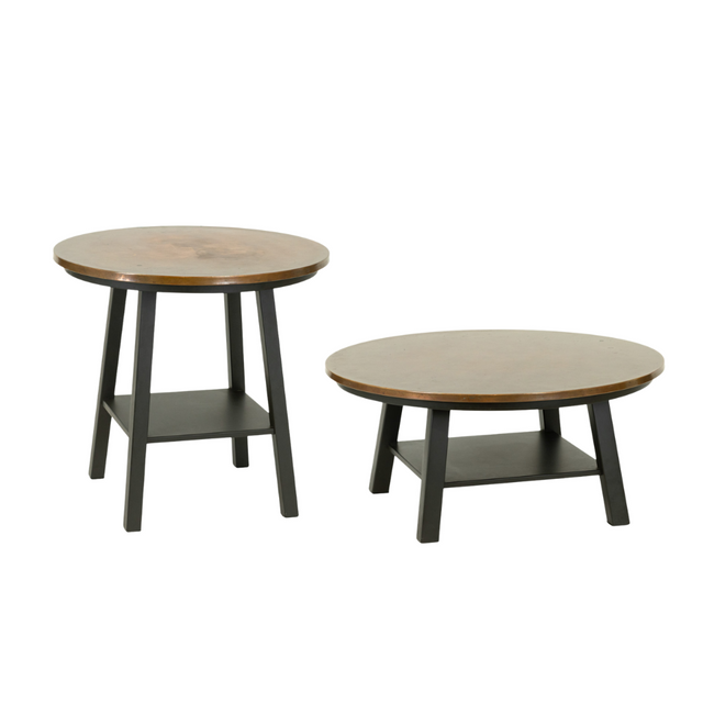 Ethan Allen Sherman Round Copper-Top Coffee and Cocktail Table