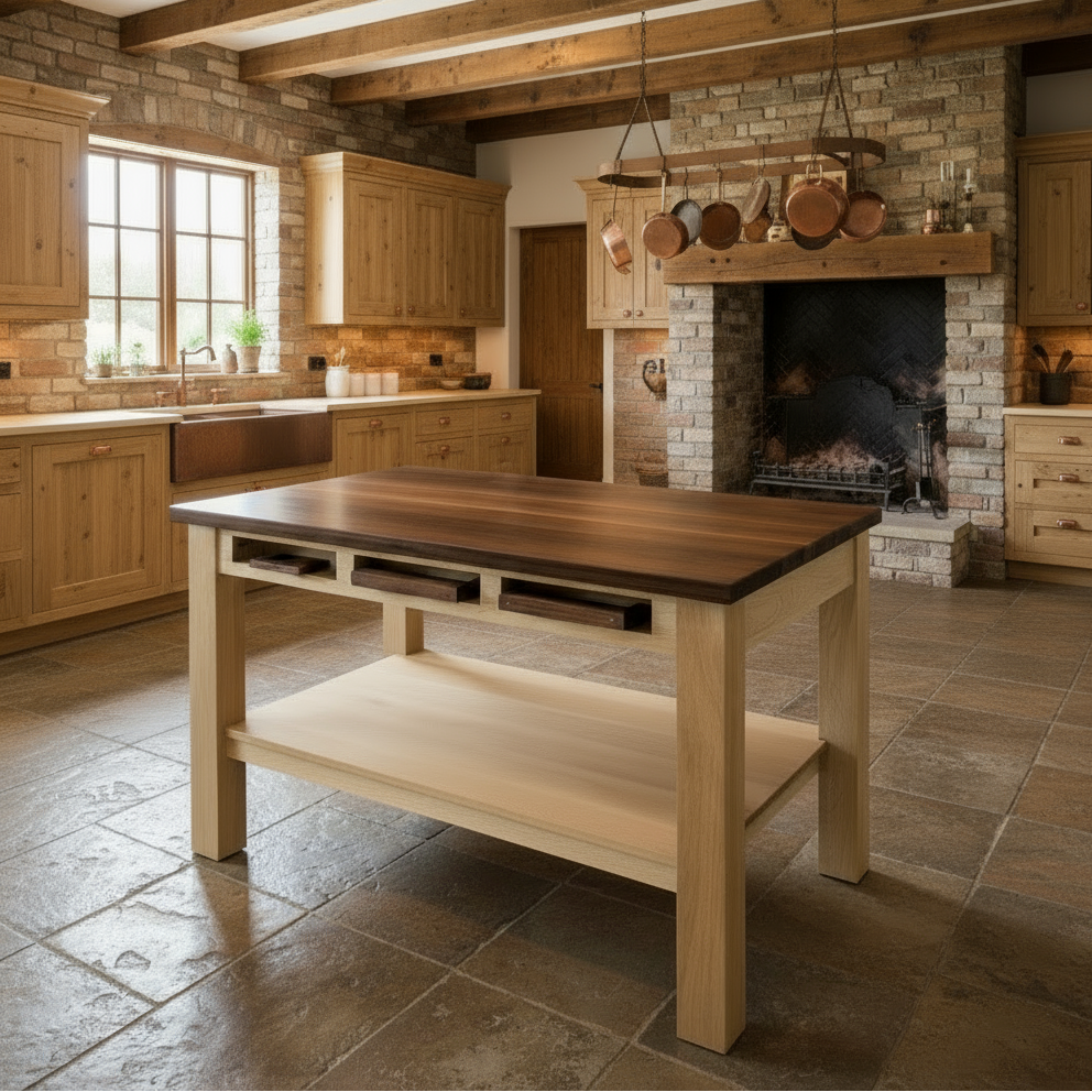 Legacy Chef’s Workstation – Solid Walnut & Oak Kitchen Table