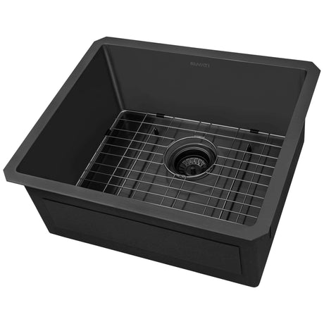 - INCLUDED IN BOX: Sink, matching strainer drain assembly, bottom rinse grid, installation guide.