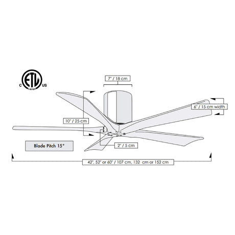 Matthews Fan IR5H-BK-WA-52 Irene-5H five-blade flush mount paddle fan in Matt...