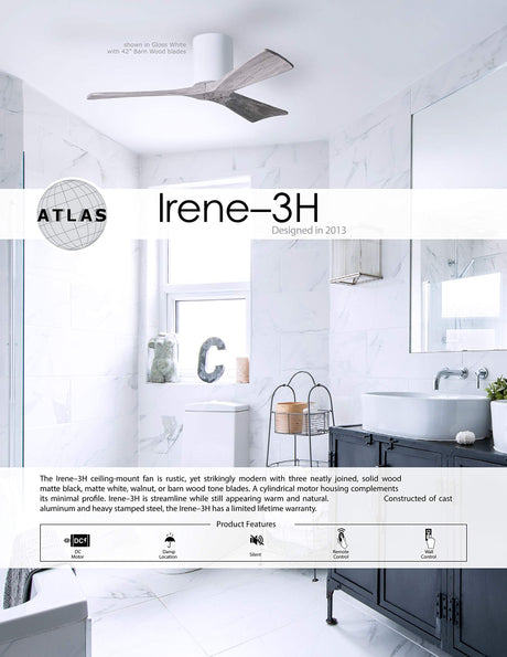 Matthews Fan IR3HLK-BRBR-WA-42 Irene-3HLK three-blade flush mount paddle fan ...
