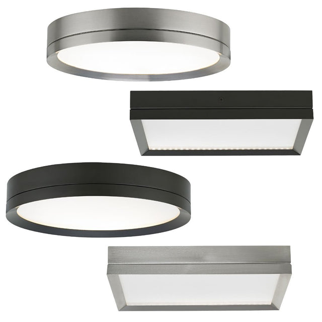 Design by TECH Lighting, 2014. The Finch Square Flush Mount Ceiling Light combines clean lines with edge-lit LED light guide technology to create an ultra-slim modern flush mount that is only 2 inches deep. Edge lighting ensures a smooth, even glow that is free of glare. Select from antique bronze or satin nickel. Shown in satin nickel. Available in 120V or 277V model. Dimmable with electronic low voltage (ELV) dimmer.