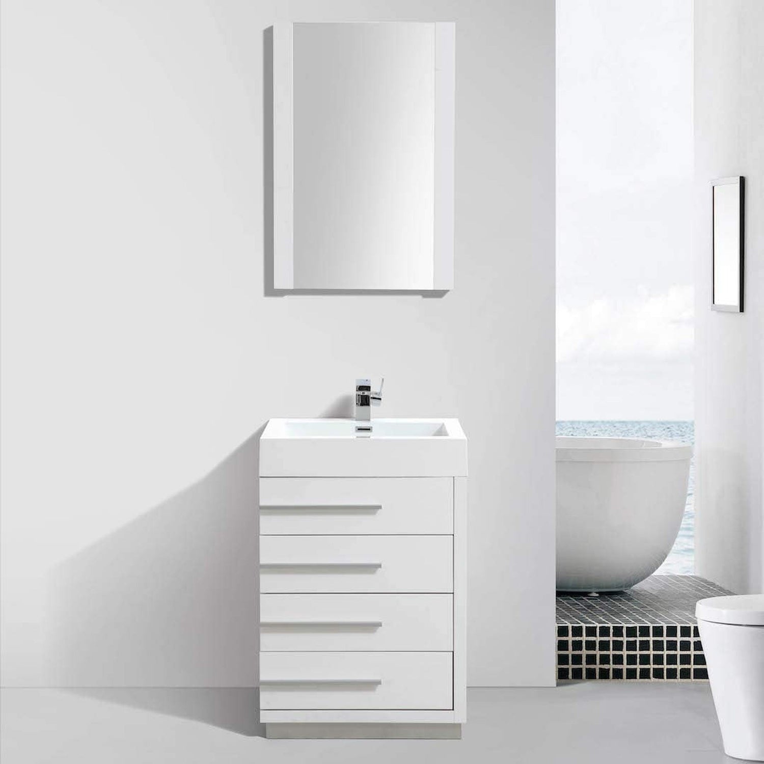 Blossom Barcelona 30" 4-Drawer White Freestanding Vanity Set With Acrylic Drop-In Single Sink