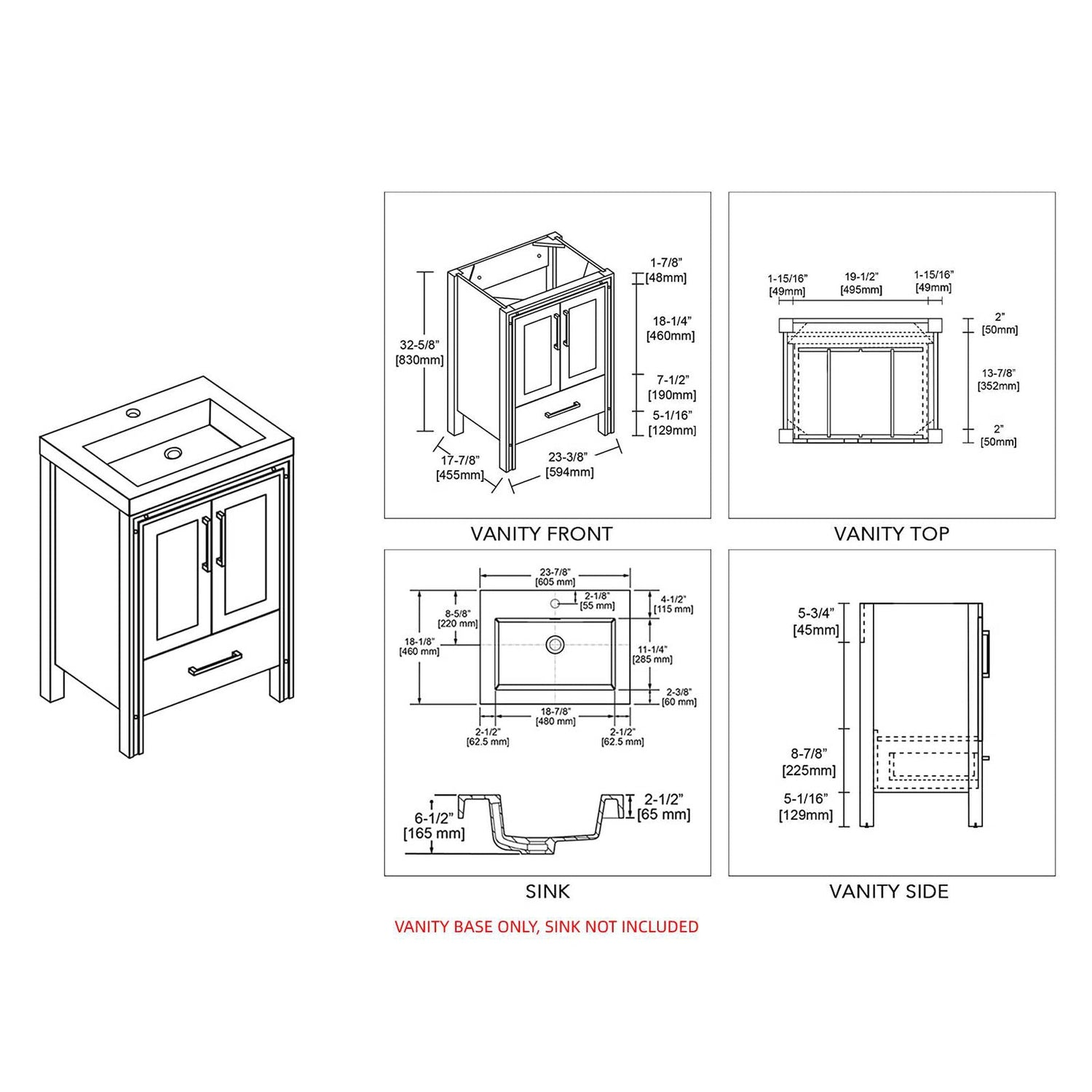 Blossom Birmingham 24" 2-Door 1-Drawer Matte Gray Freestanding Vanity Base