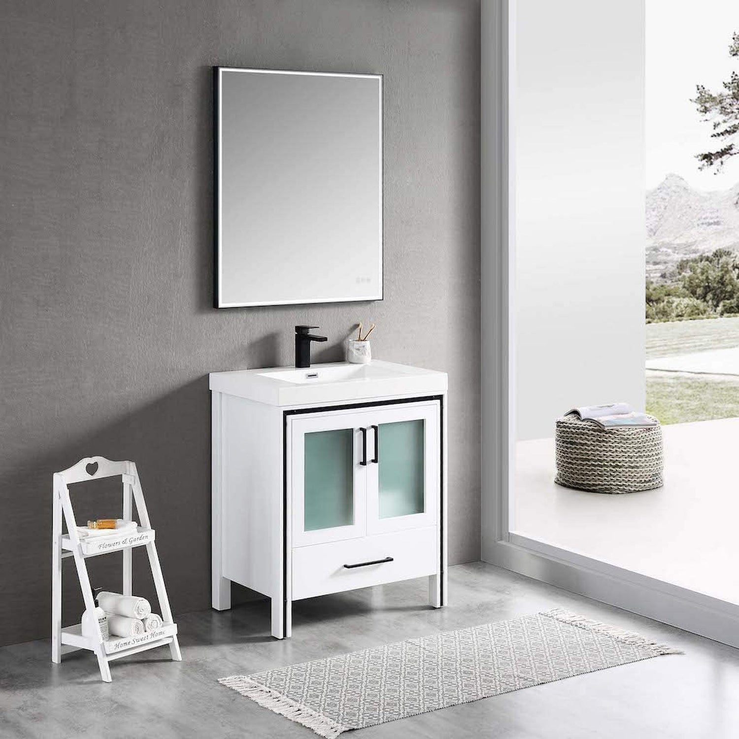 Blossom Birmingham 30" 2-Door 1-Drawer Glossy White Freestanding Vanity Set With Acrylic Top And Integrated Sink