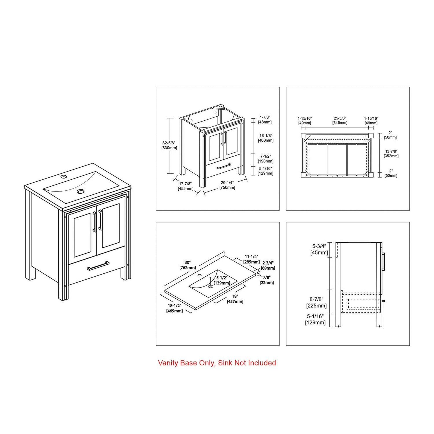 Blossom Birmingham 30" 2-Door 1-Drawer Matte Gray Freestanding Vanity Base