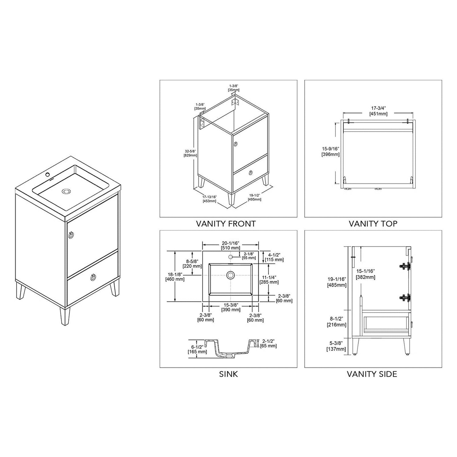 Blossom Lyon 20" 1-Door 1-Drawer Matte White Freestanding Vanity Set With Acrylic Top and Integrated Single Sink