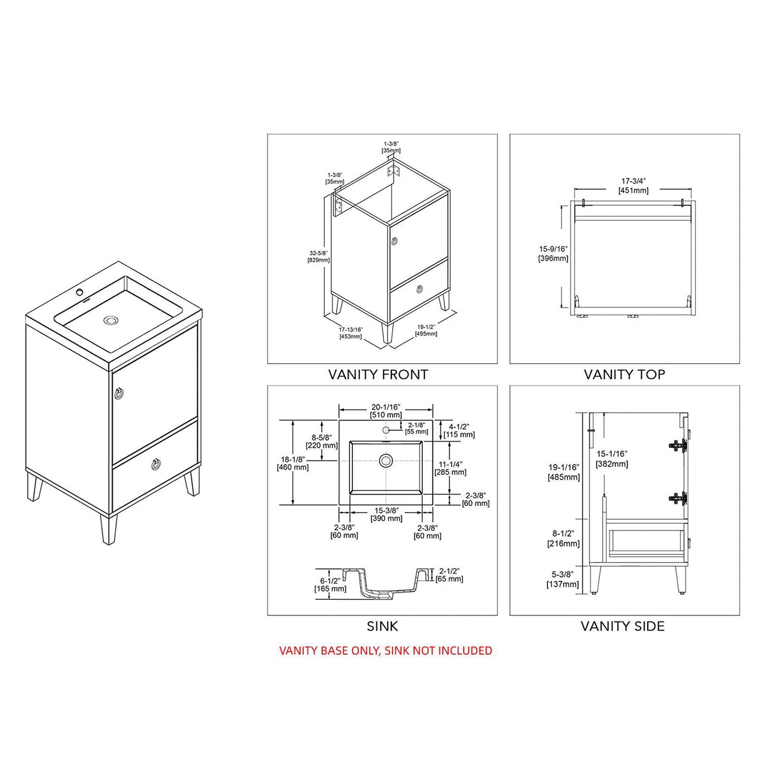 Blossom Lyon 20" 1-Door 1-Drawer Metal Gray Freestanding Vanity Base