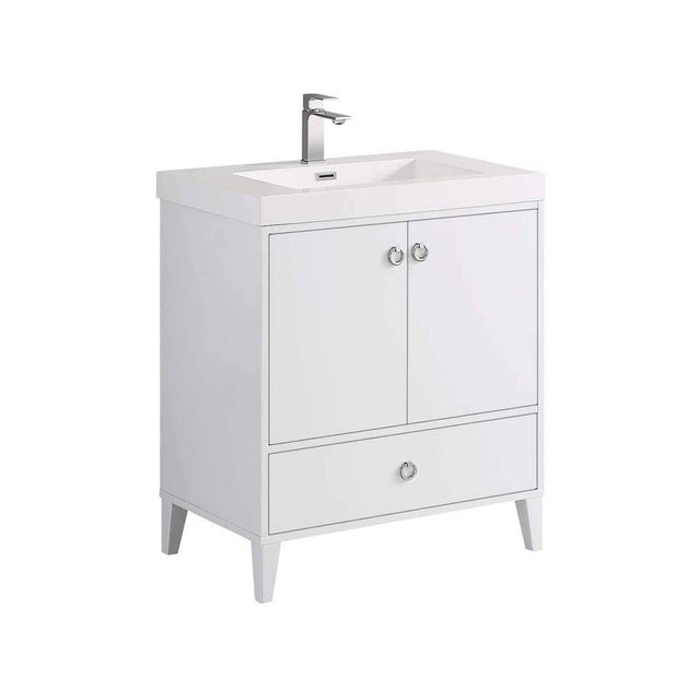 Blossom Lyon 30" 2-Door 1-Drawer Matte White Freestanding Vanity Set With Acrylic Top and Integrated Single Sink