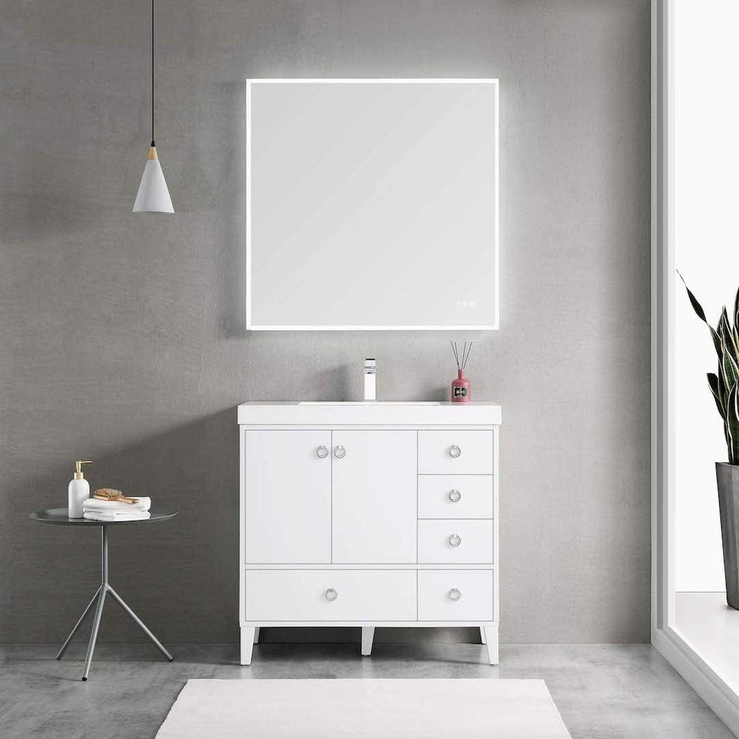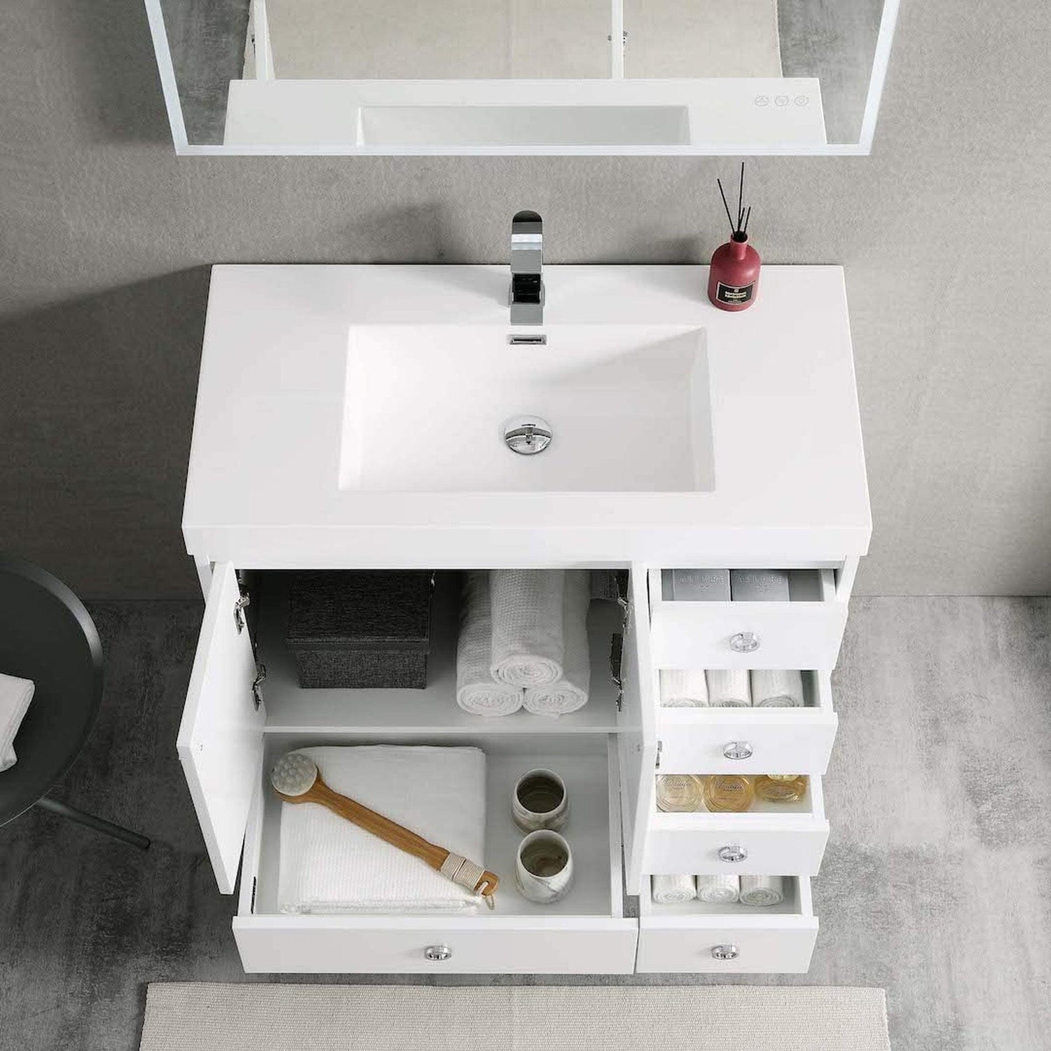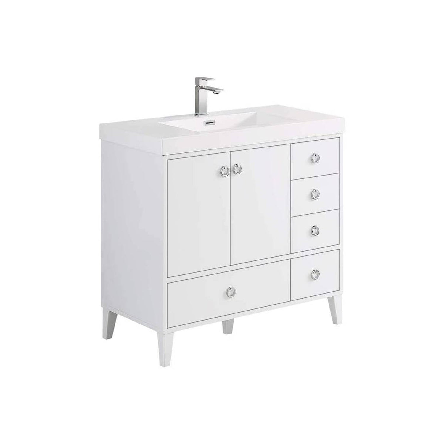 Blossom Lyon 36" 2-Door 5-Drawer Matte White Freestanding Vanity Set With Acrylic Top and Integrated Single Sink