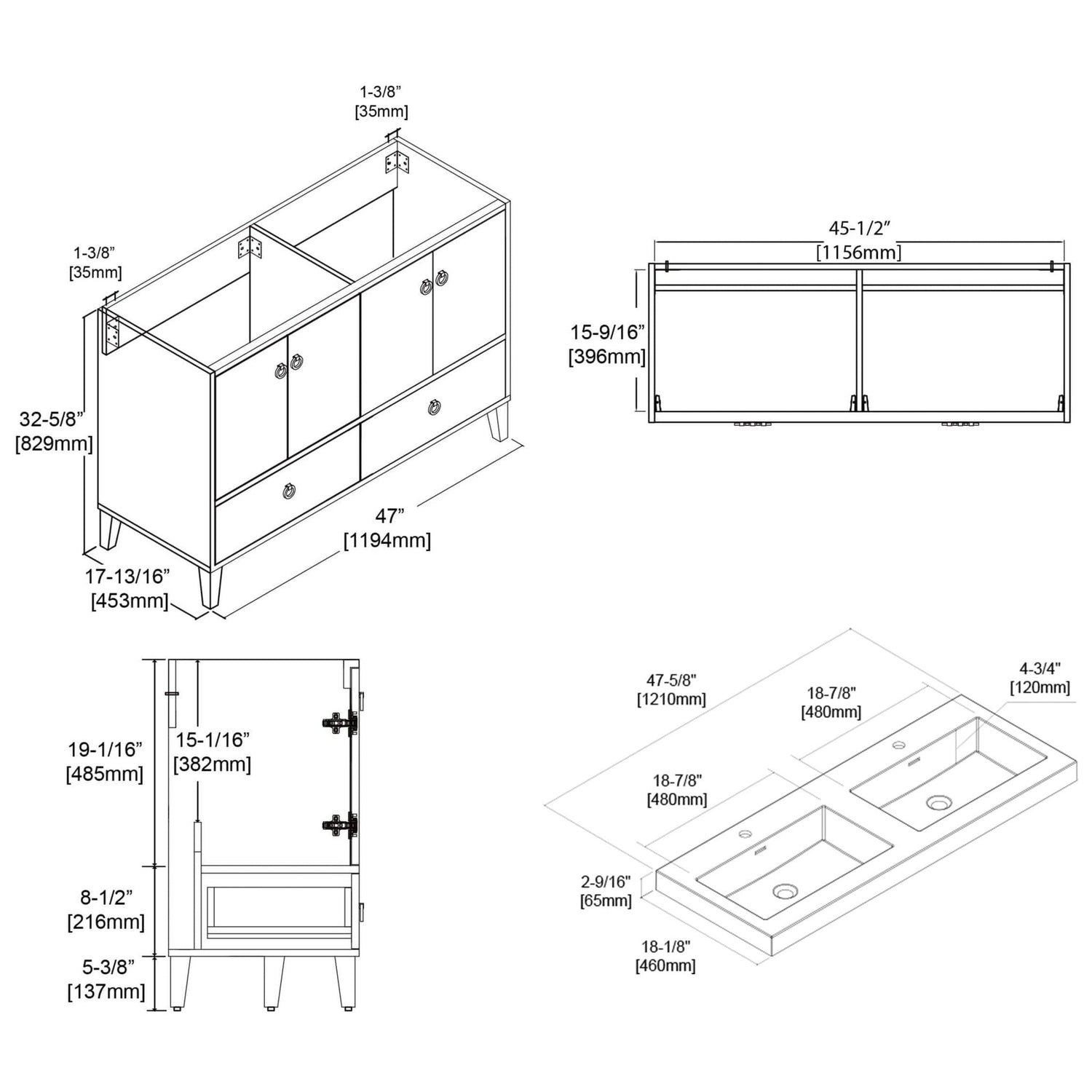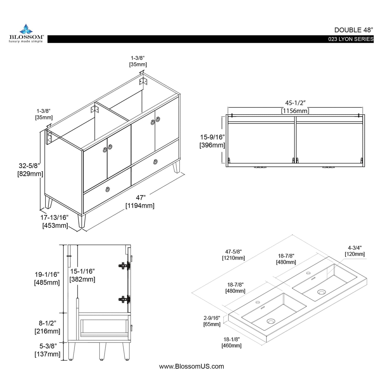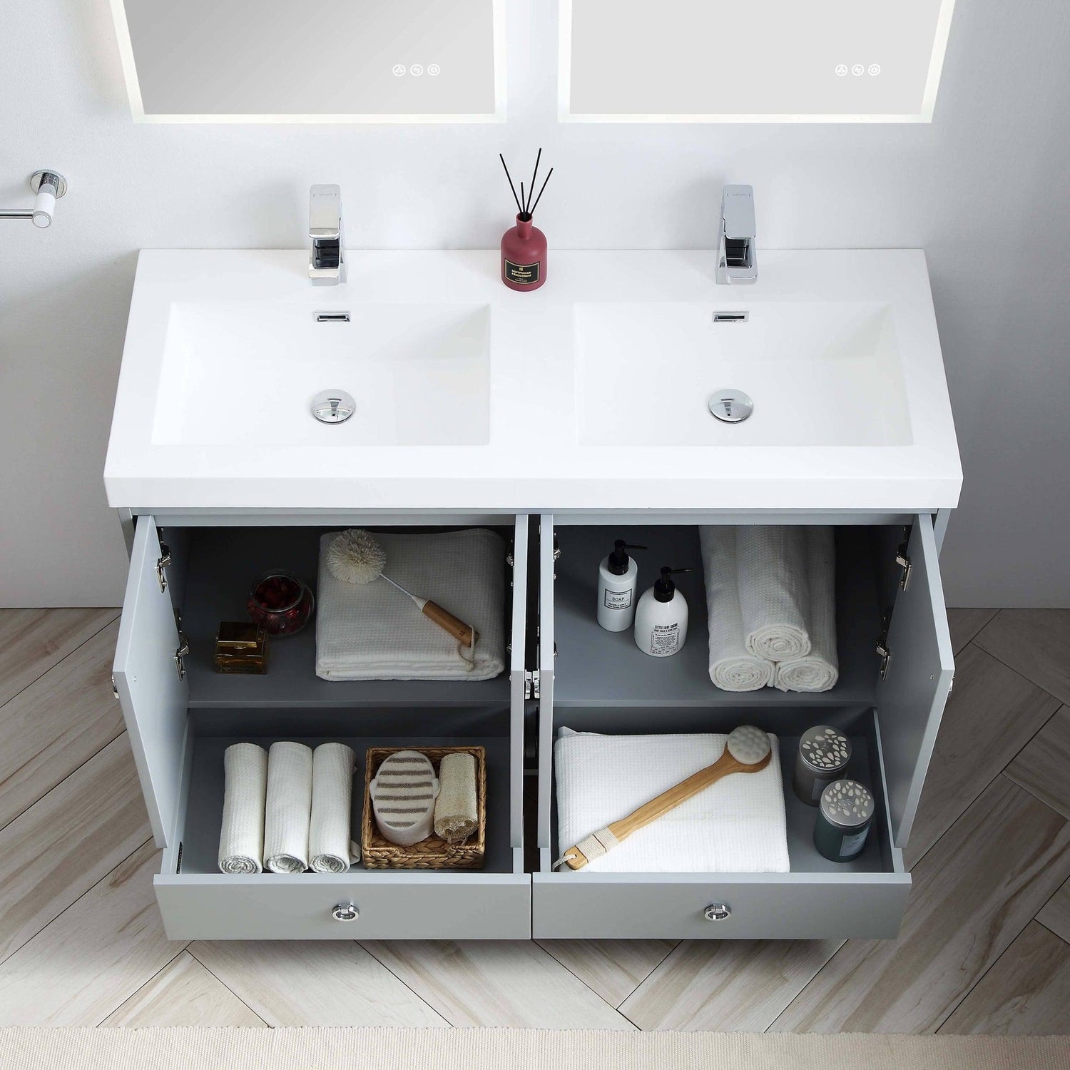 Blossom Lyon 48" 4-Door 2-Drawer Metal Gray Freestanding Vanity Set With Acrylic Top and Integrated Double Sinks