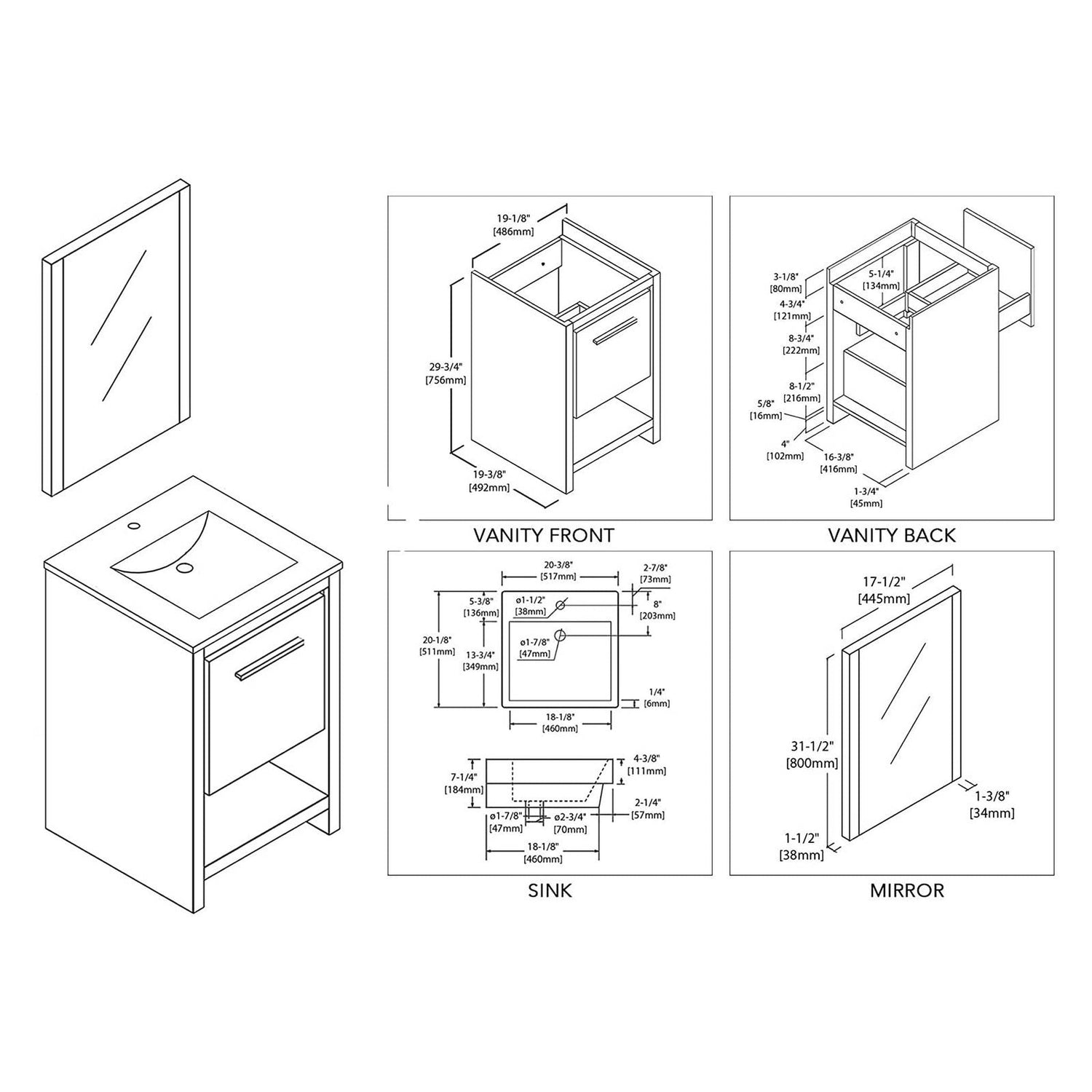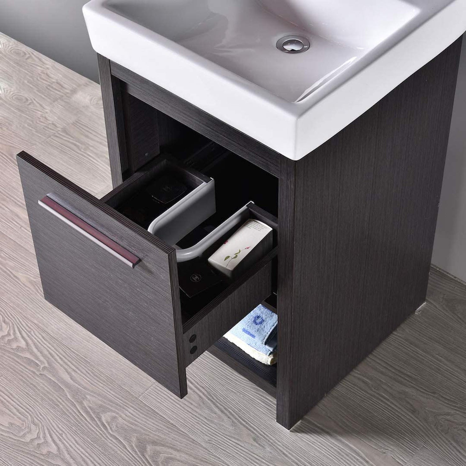 Blossom Milan 20" 1-Drawer Silver Gray Freestanding Vanity Set With Ceramic Drop-In Single Sink And Mirror
